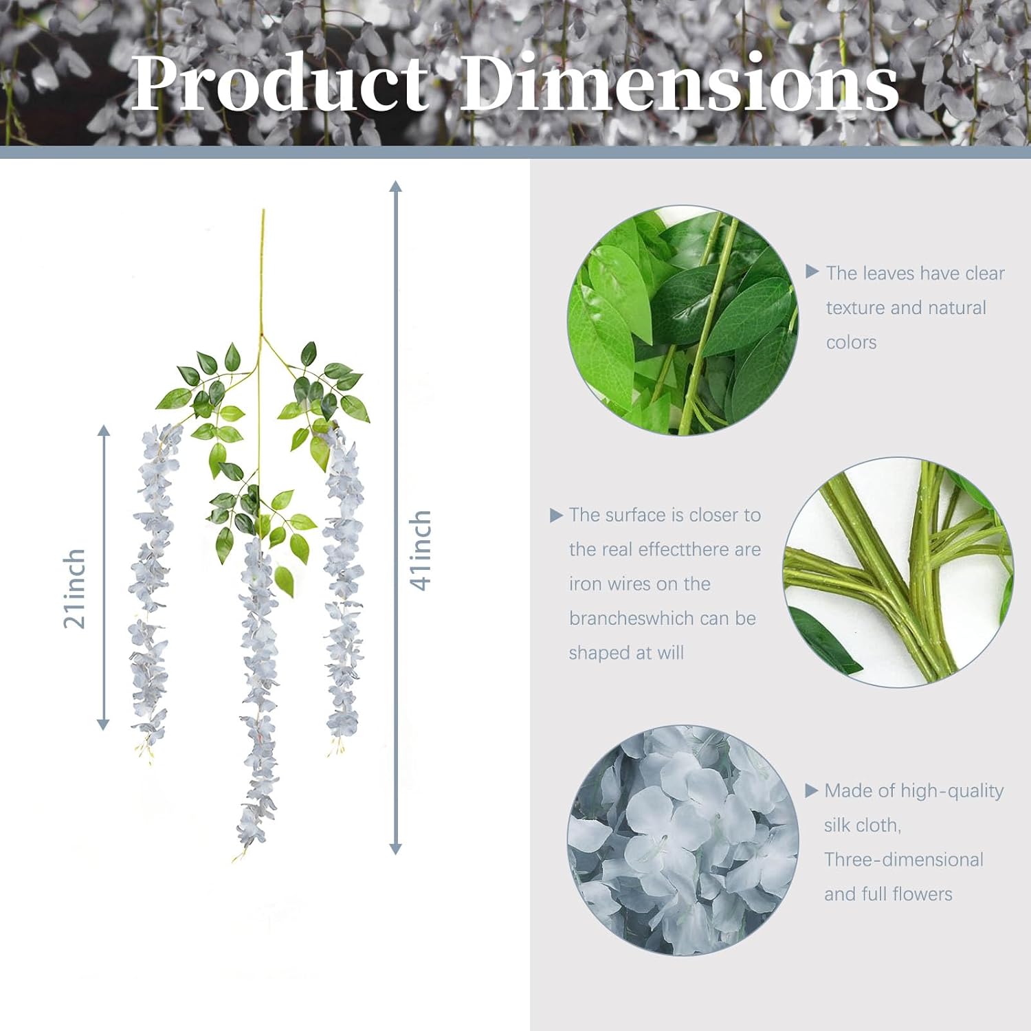 - 【Grey Wisteria Garland】Whether you decorate beautiful grey wisteria hanging flowers indoors or outdoors, you can achieve a magical decorative effect. Decorating the interior makes your home look full of life while decorating the exterior makes the environment more springy.