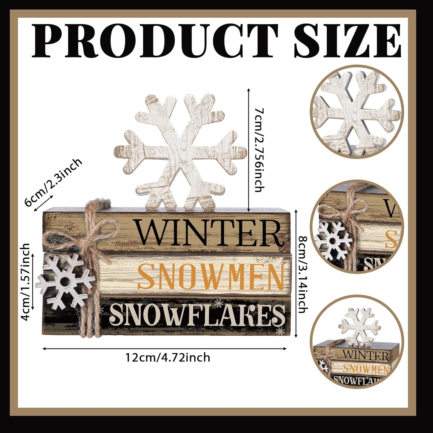 - Winter Design and Size: these winter centerpieces decors boast an attractive, retro design, seamlessly incorporating classic colors; The size of each mini book is about 4.72 inches/ 12 cm in length and each layer is about 0.79 inch/ 2 cm in height and about 3.15 inches/ 8 cm in width, suitable for adorning your rooms