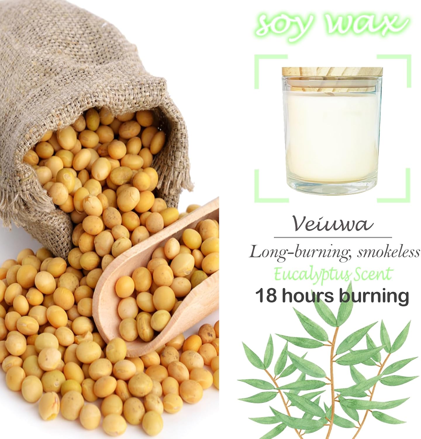 - 🪔🪔SAFE DESIGN: Our aromatherapy candles are made of soy and eucalyptus, the bottle is designed by Mason jar shape and white color, the soy candles are smoke-free and harmless and safer, along with the light eucalyptus fragrance has a relaxing and soothing effect, which is good for relieving your stress and relaxing your spirit when you are fatigued.