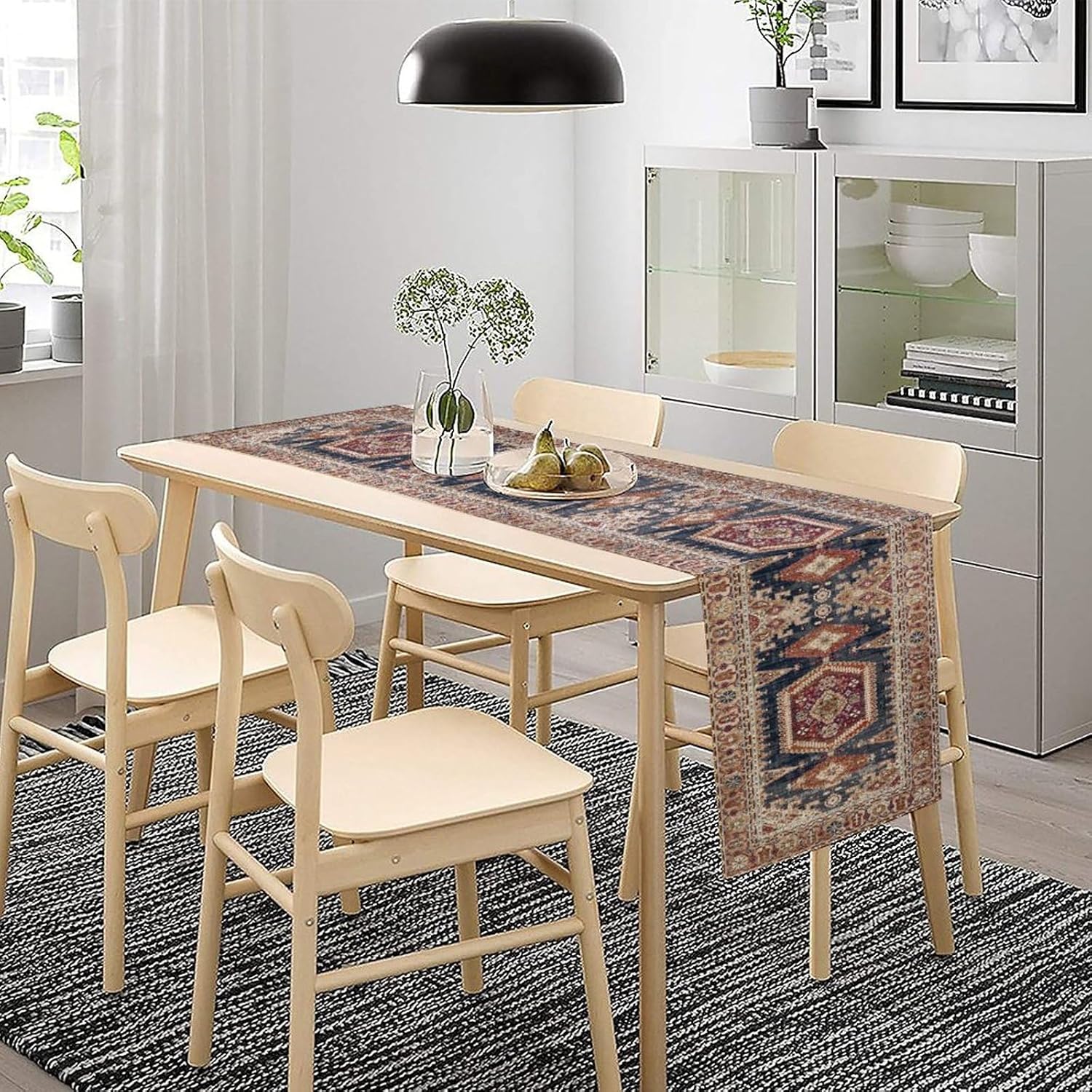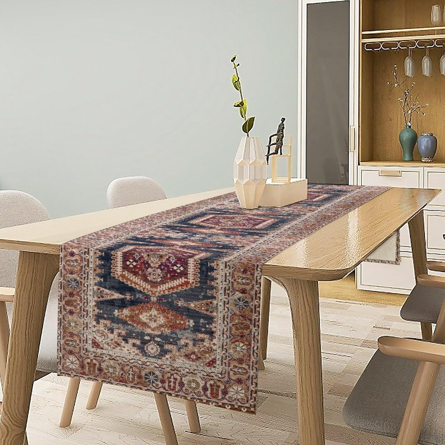 Vintage Boho Table Runner,Flower Geometric Design Rustic Farmhouse Table Runner for Home Farmhouse Kitchen Table Dining Coffee Room Garden Party Wedding Decor 13x120in