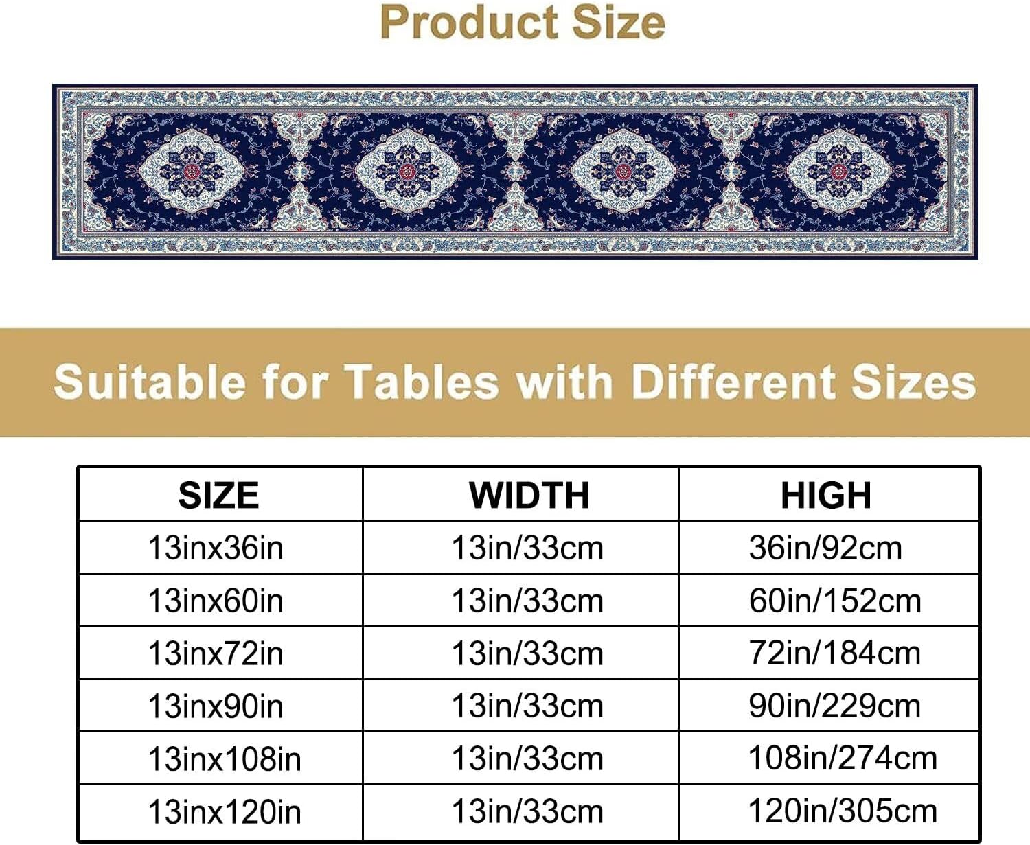 Elegant Palace Boho Blue Table Runner Vintage French Style Farmhouse Geometric Home Farmhouse Kitchen Table Dining Coffee Room Garden Party Wedding Decor 13x120in