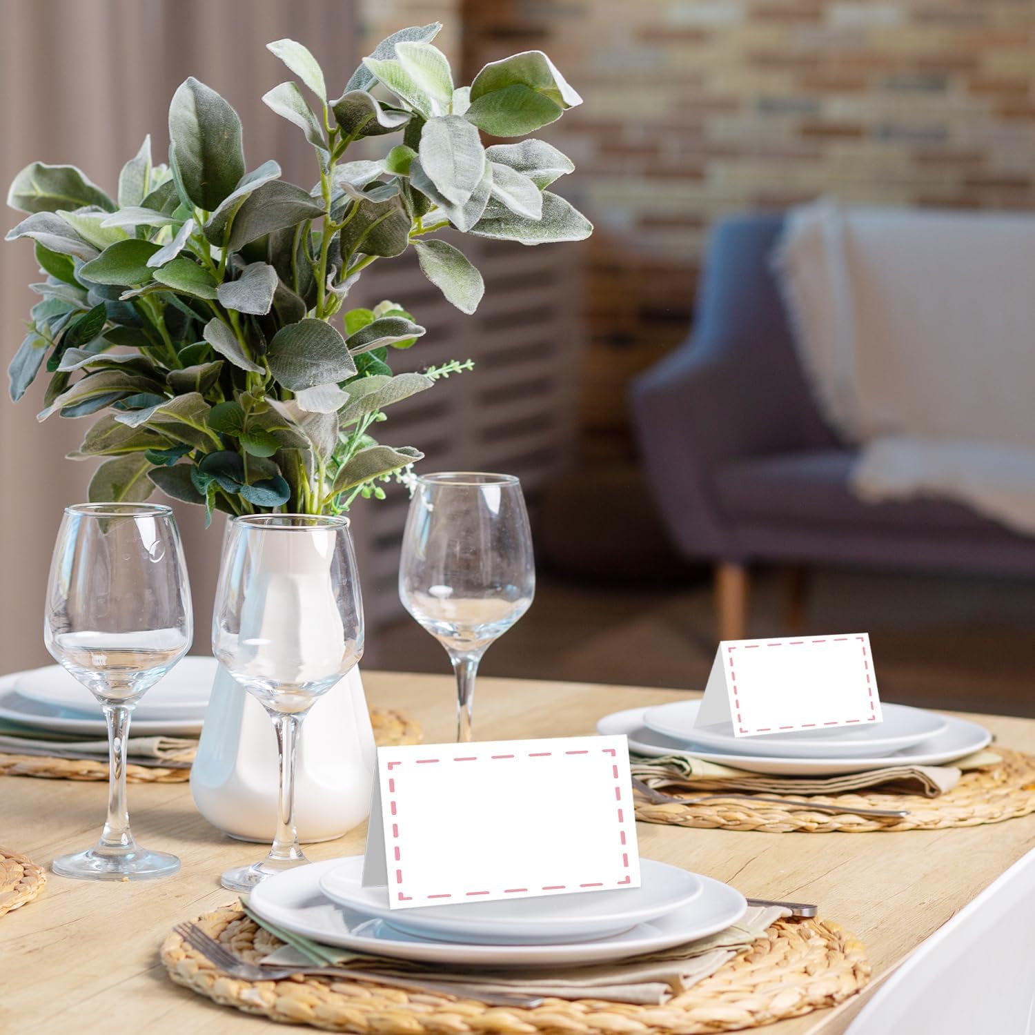 25 Pack Pink Lines Border Place Cards, Editable Name Cards for Table Setting, Tent Cards Food Label for Dinner Party, Bridal Shower, Wedding, Baby Shower and Events -T40