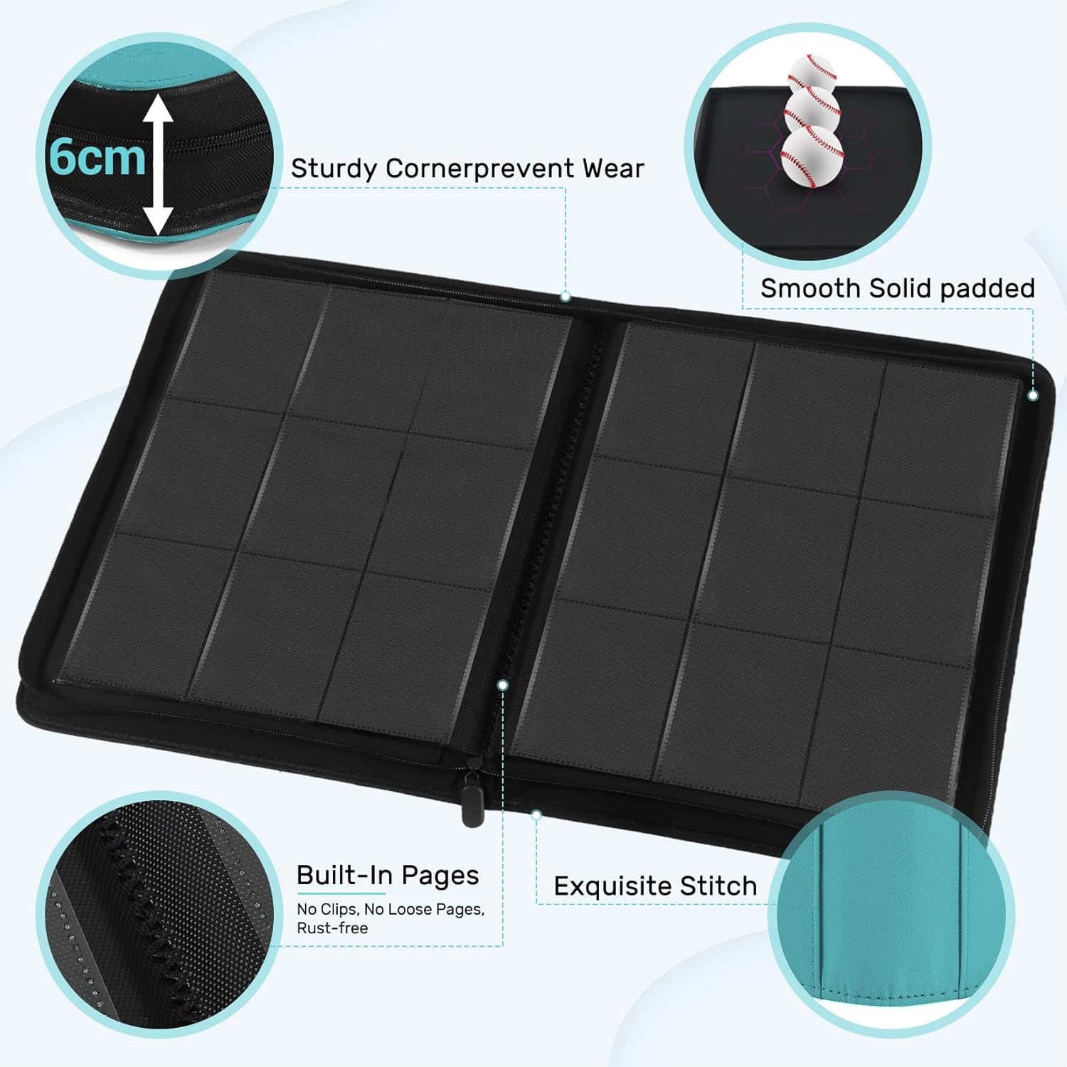 - Side Loading & Ultra-Clear Pages: Featuring archival-grade acid-free & non-PVC materials, this side-loading card binder prevents fading and card stickiness while its ultra-clear anti-scratch sleeves showcase holofoil details and securely lock cards in place—ideal for prolonged storage and collection display.