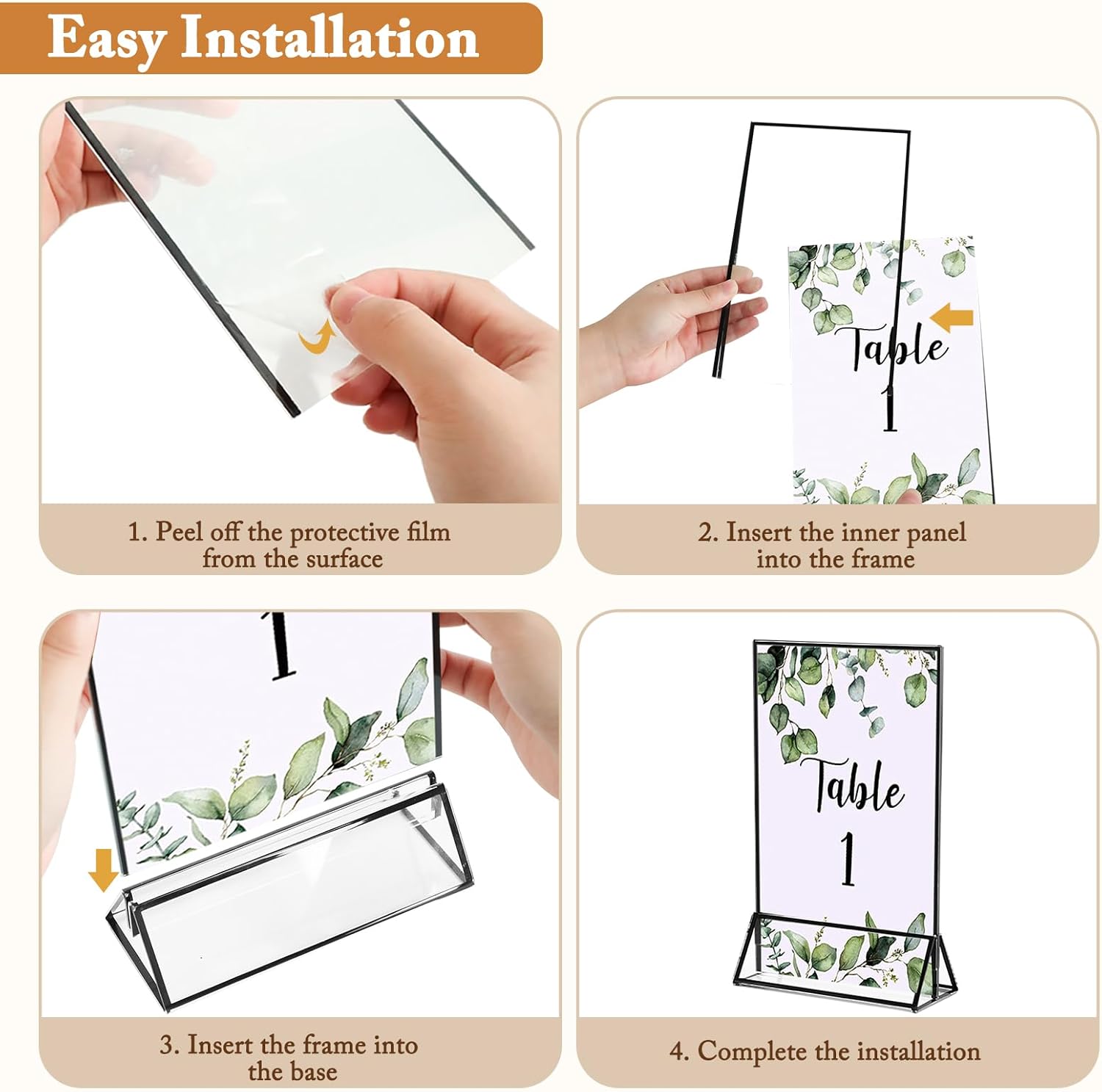 - ❤️ Double-Sided Floating Display: This sign holder features a vertical stand perfect for displaying two pictures back to back, ideal for holding a table number card, seating chart, centerpieces, or decorations at a wedding ceremony and reception.
