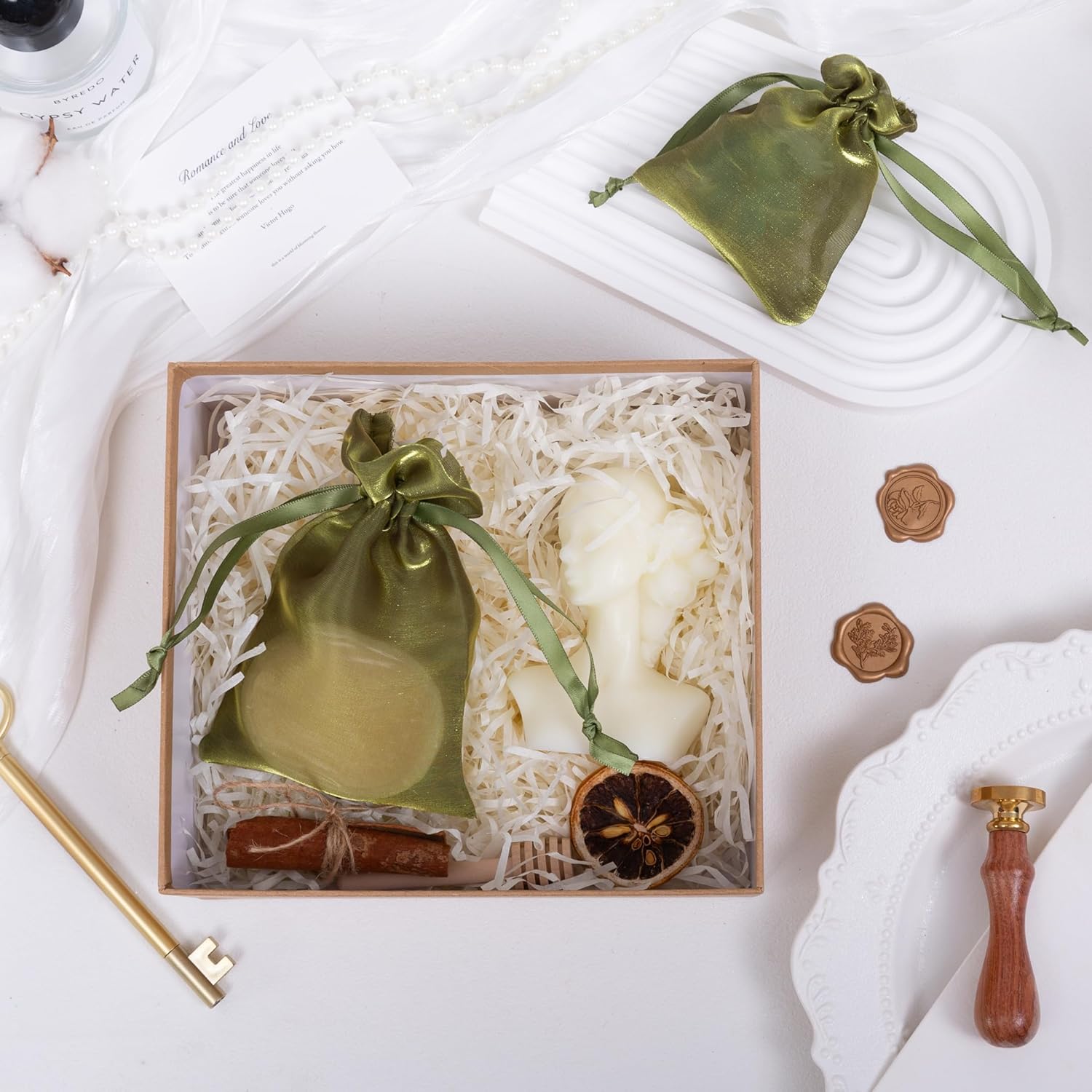 20 Pcs Moss Green Small Organza Bags 3X4 inch for Wedding Favors with Drawstring, Mini Mesh Gift Bags Jewelry Pouch for Candy Bridal Shower Party Favor Baby Shower Christmas