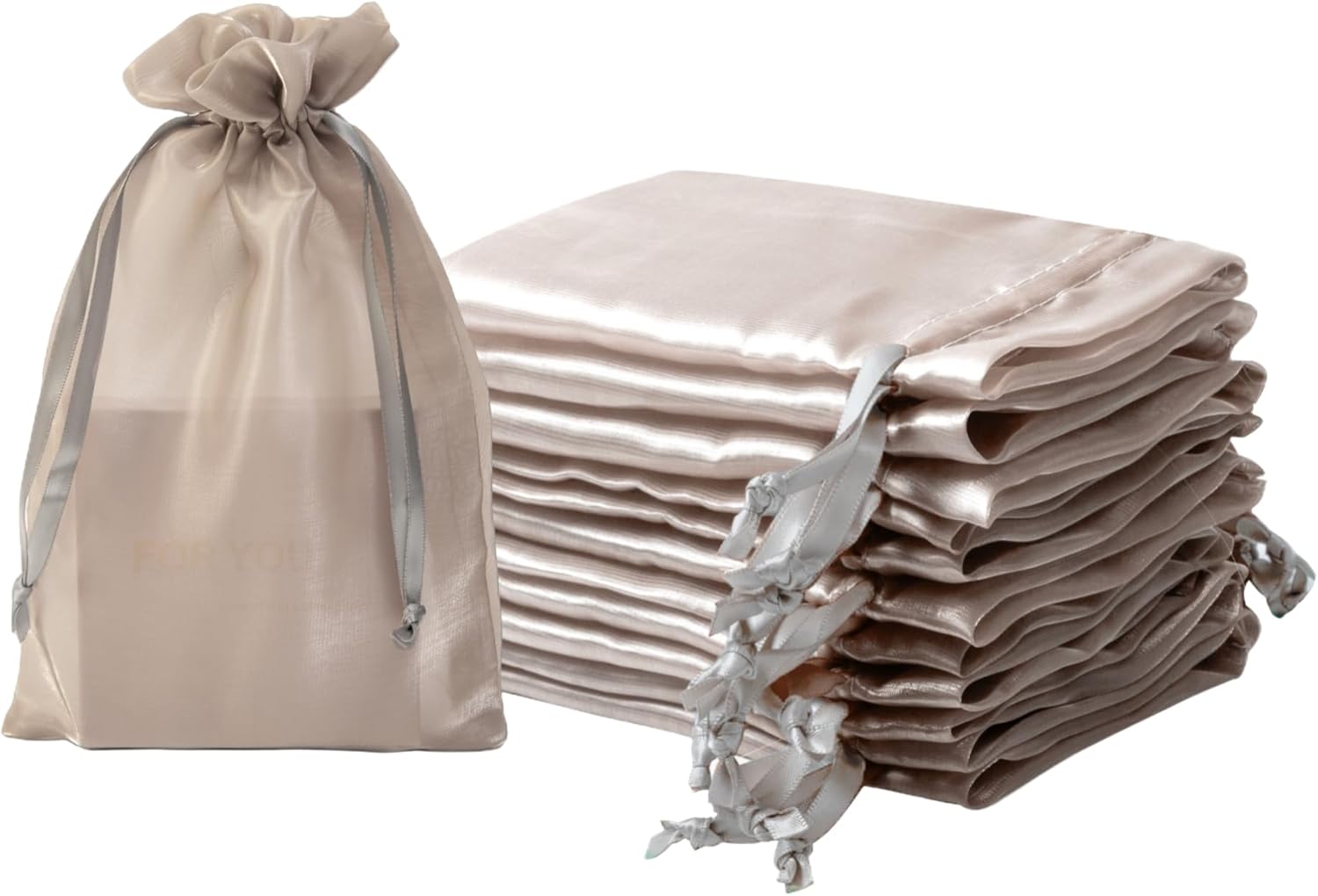 - DRAWSTRING DESIGN: Featuring silk-touch satin drawstrings, practical and beautiful, the satin drawstring pulls together and can be tied in a bow, making the gift bags easy to open and close, keeping your contents safe inside