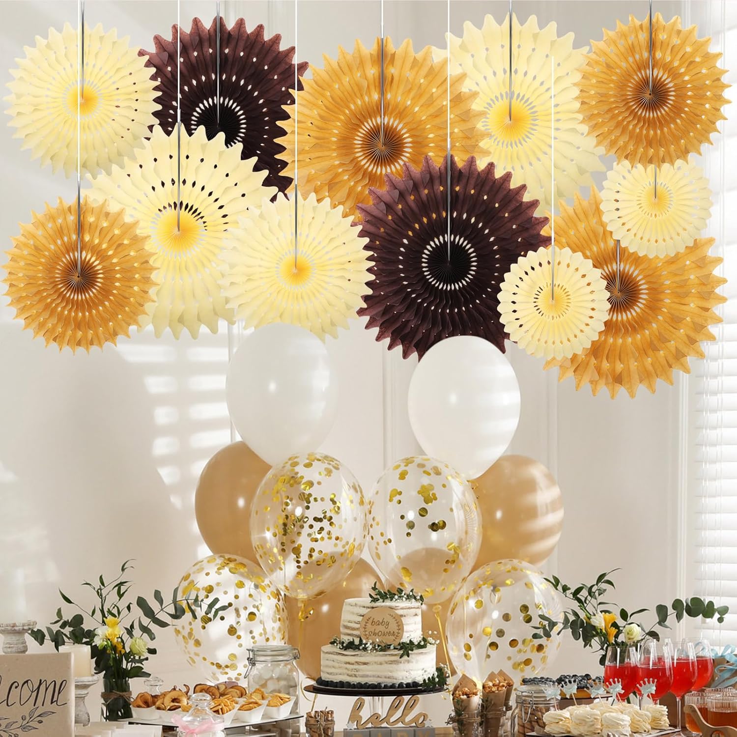 - Vibrant Decorations: you will receive 12 pcs hanging honeycomb paper fans in brown and beige; These stylish decorations will enliven any space and create a fun and festive atmosphere instantly