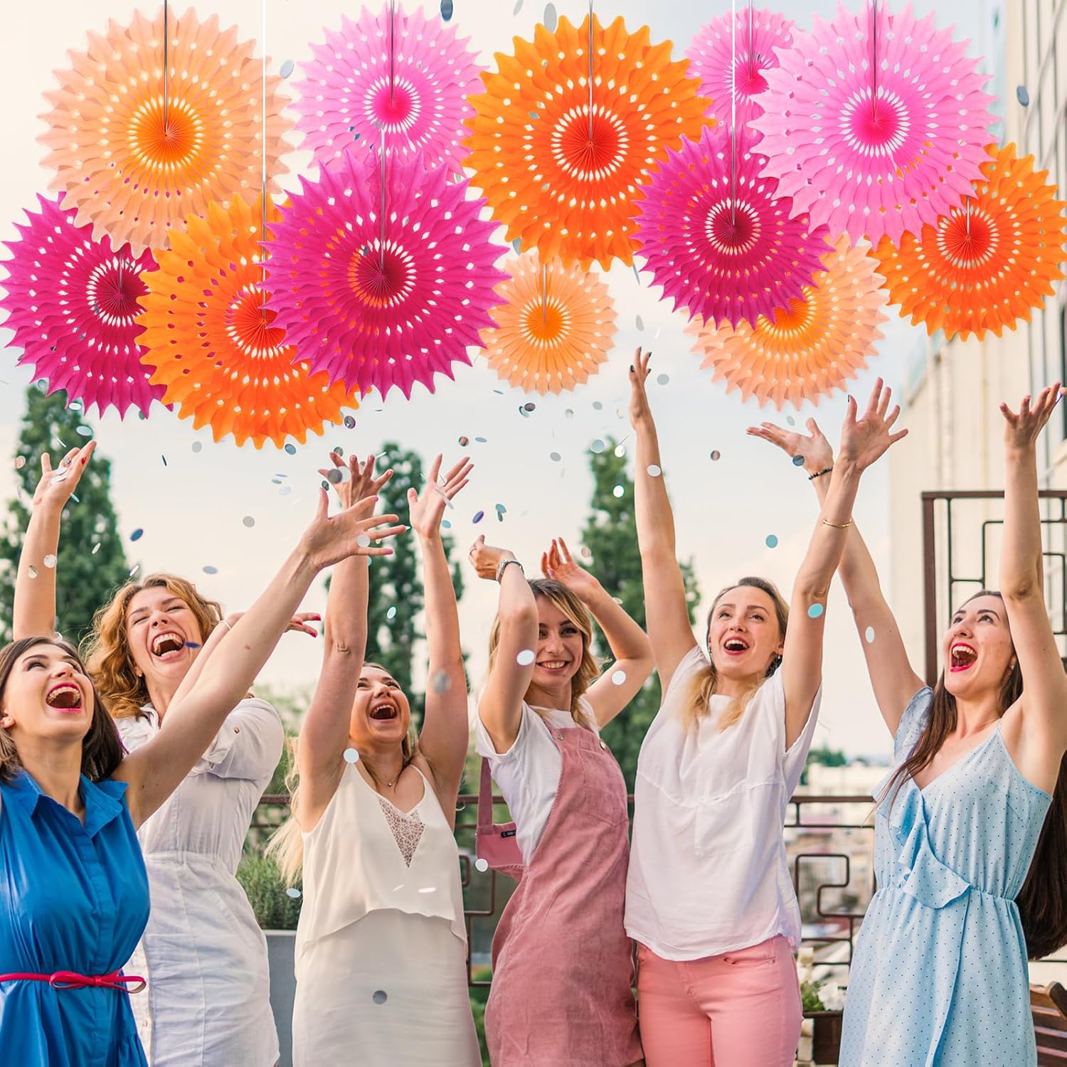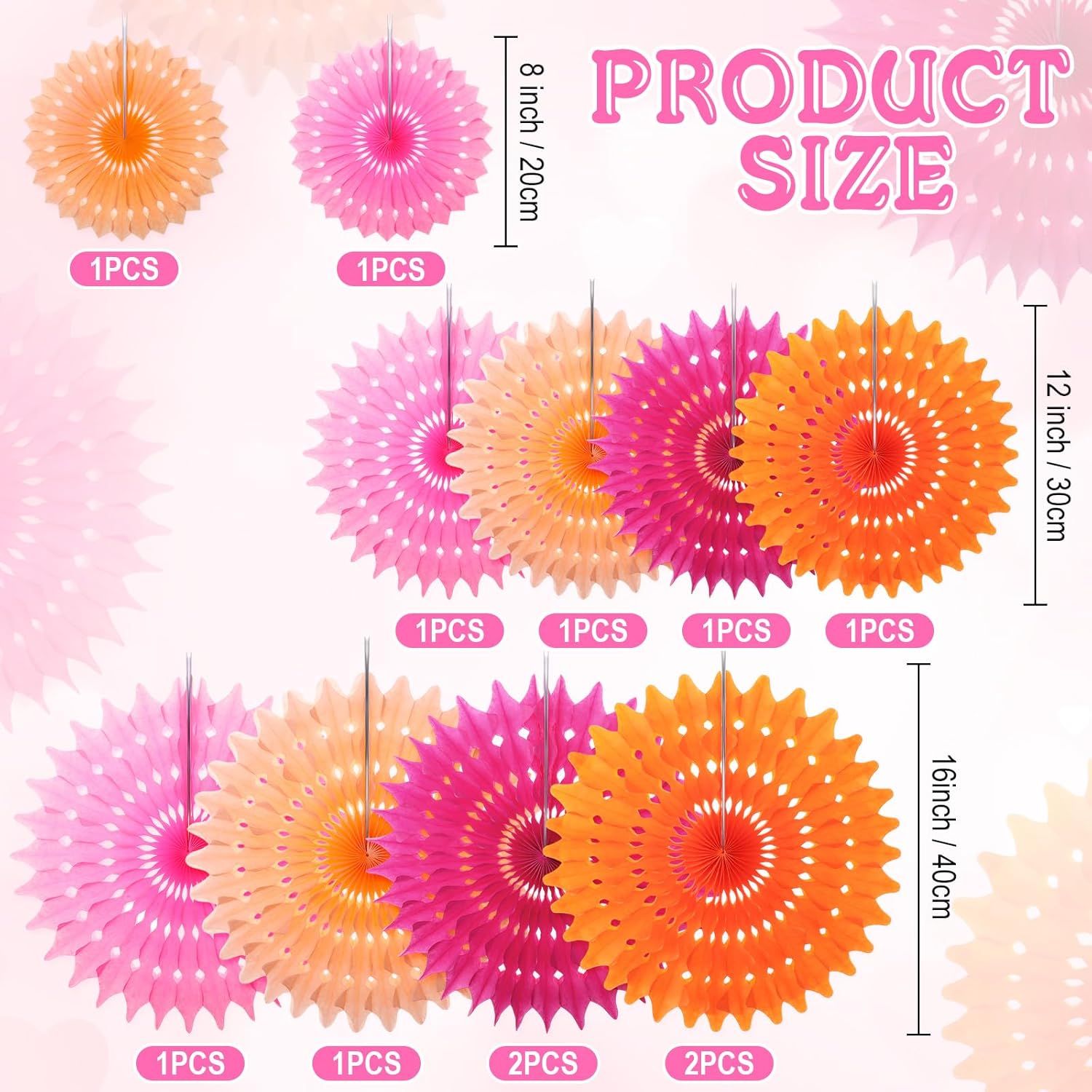 - Vibrant Decorations: you will receive 12 pcs hanging honeycomb paper fans in pink and orange; These stylish decorations will enliven any space and create a fun and festive atmosphere instantly