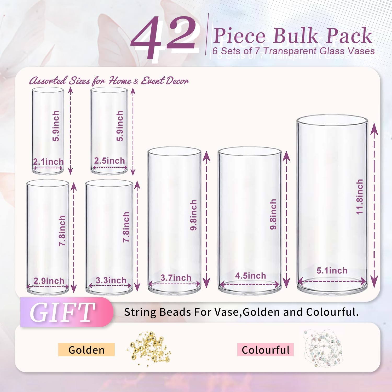 42pcs Glass Vase Cylinder Vases for Centerpieces 7 Vases of Different Sizes Small Flower Glass Clear Vases Home Decor Centerpiece Table Flower Vase Decorations for Wedding Decoration&Holiday