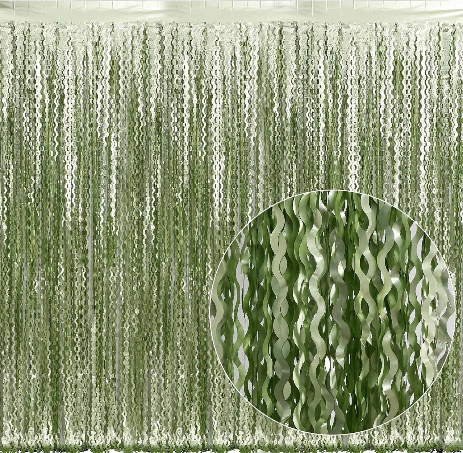 - 【LATEST Wavy Shape Tinsel Backdrop】The sage green foil curtain backdrop is made of aluminium foil with wavy shape, good for adding sparkle as decorations for parties