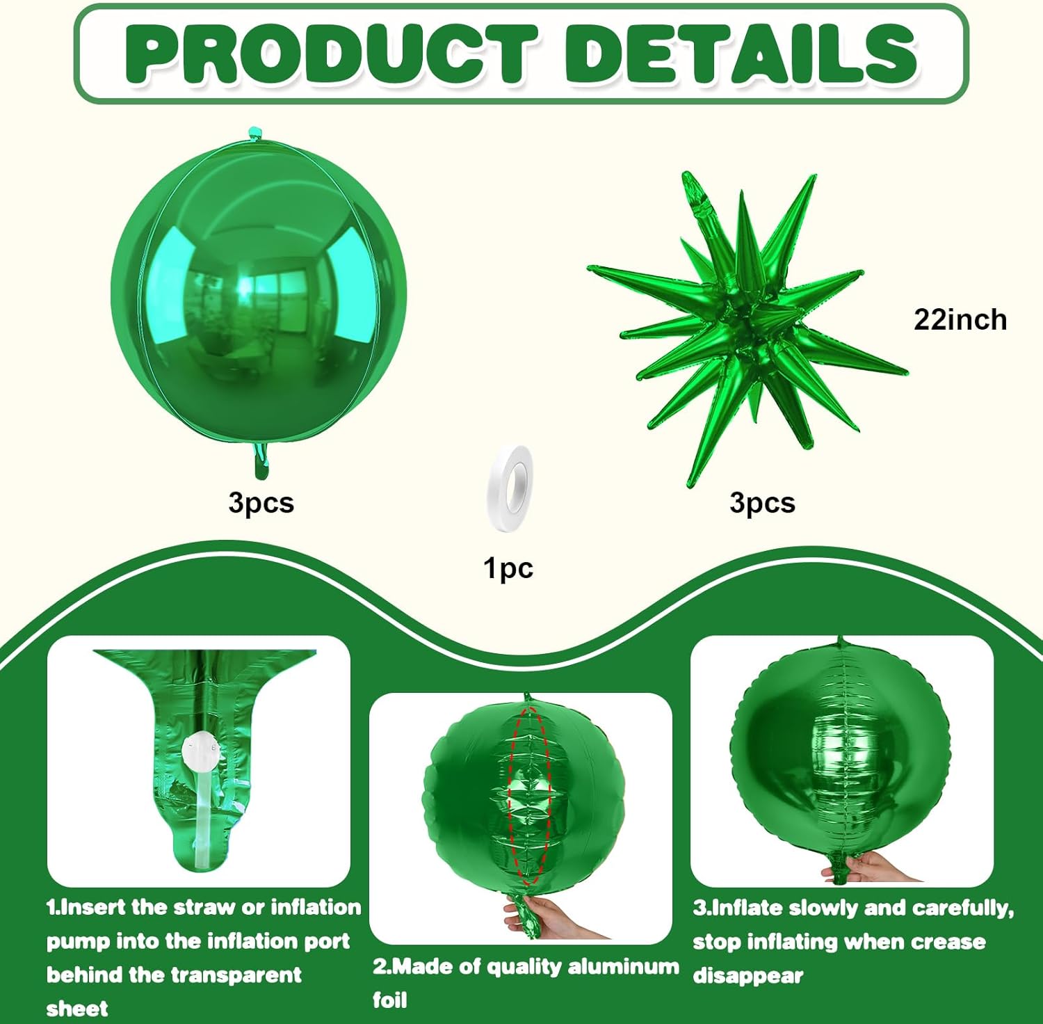 - 【Package】The package includes 3pcs 22Inch green 4D ball foil balloons, 3pcs 22Inch green star foil balloons,and ribbon.These huge balloons can help you decorate your party better.