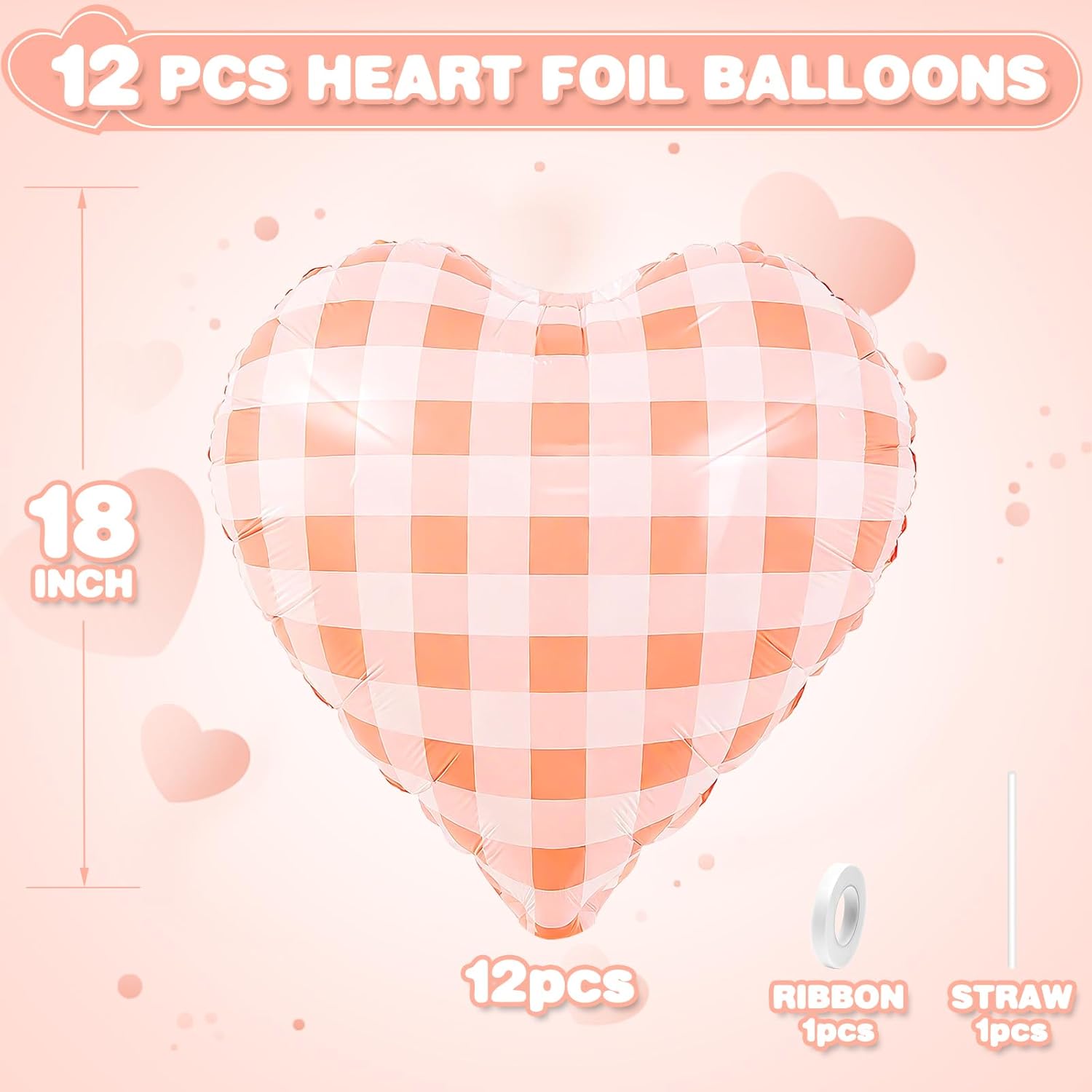 - 12PCS HEART BALLOONS:Package include 12pcs red white checkered heart foil balloons,1pc straw.Large enough to help you better decorate your party.
