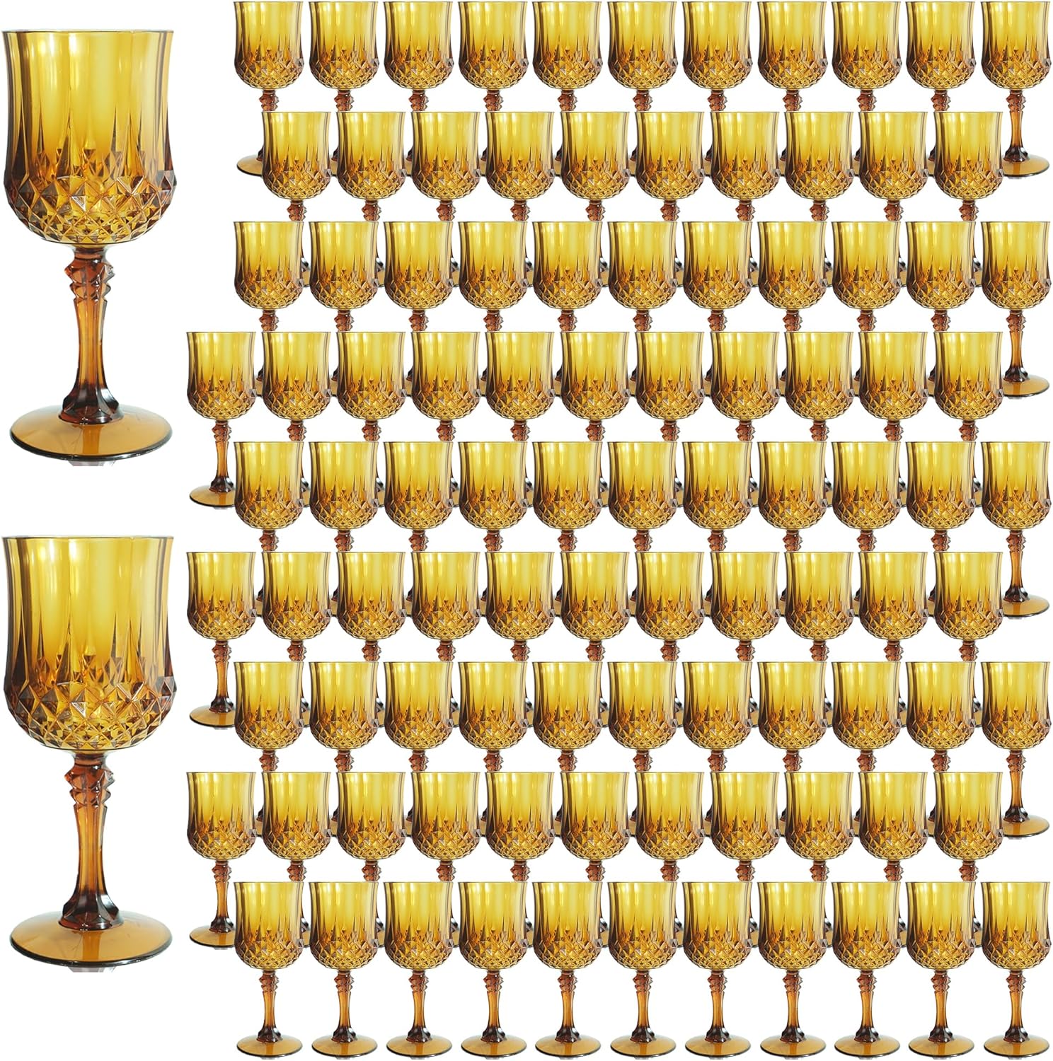 Plastic Wine Glasses,100PCS Amber Plastic Goblets Vintage Style Cordial Drinking Glasses for Wedding Reception, Grand Event Party Supplies (100, Amber)