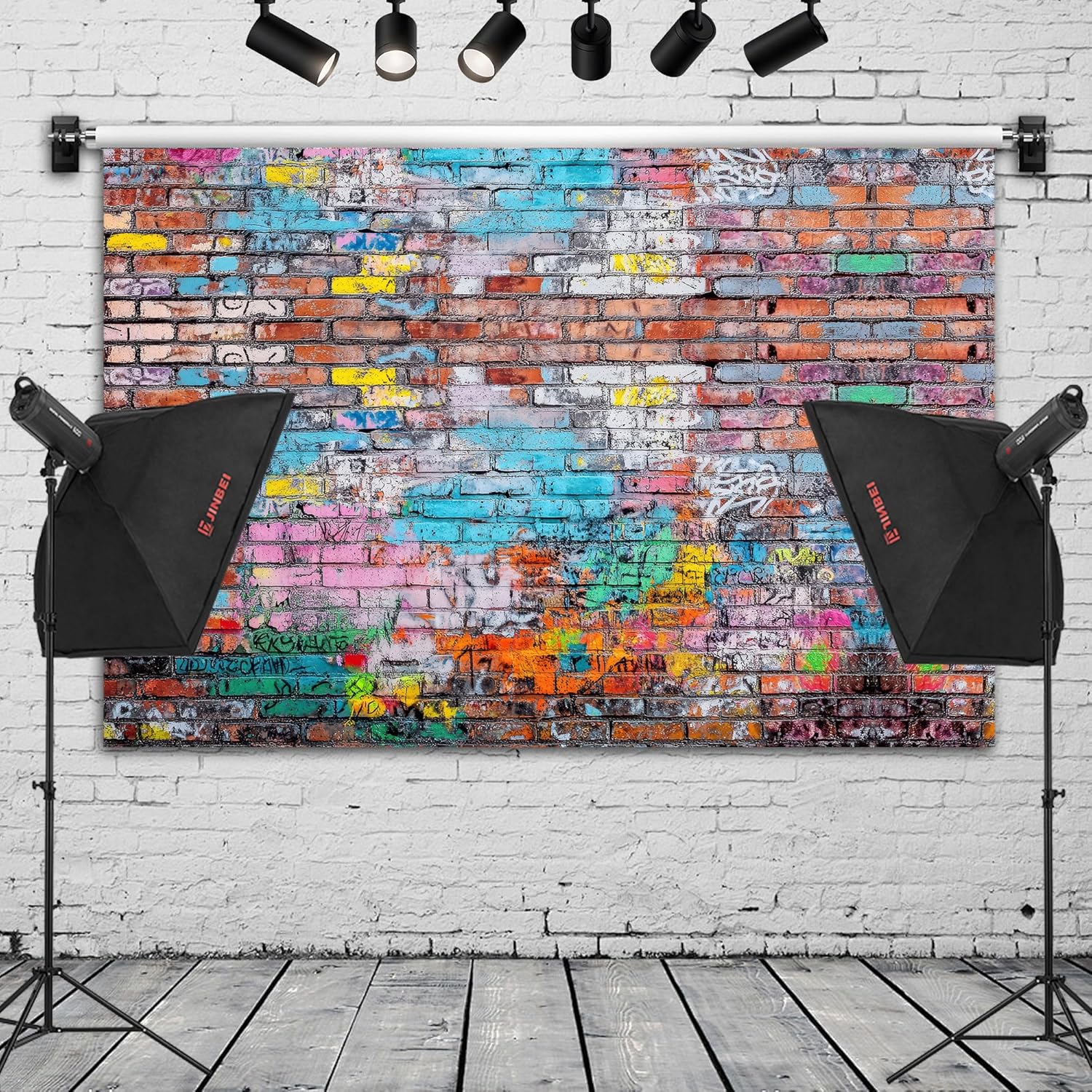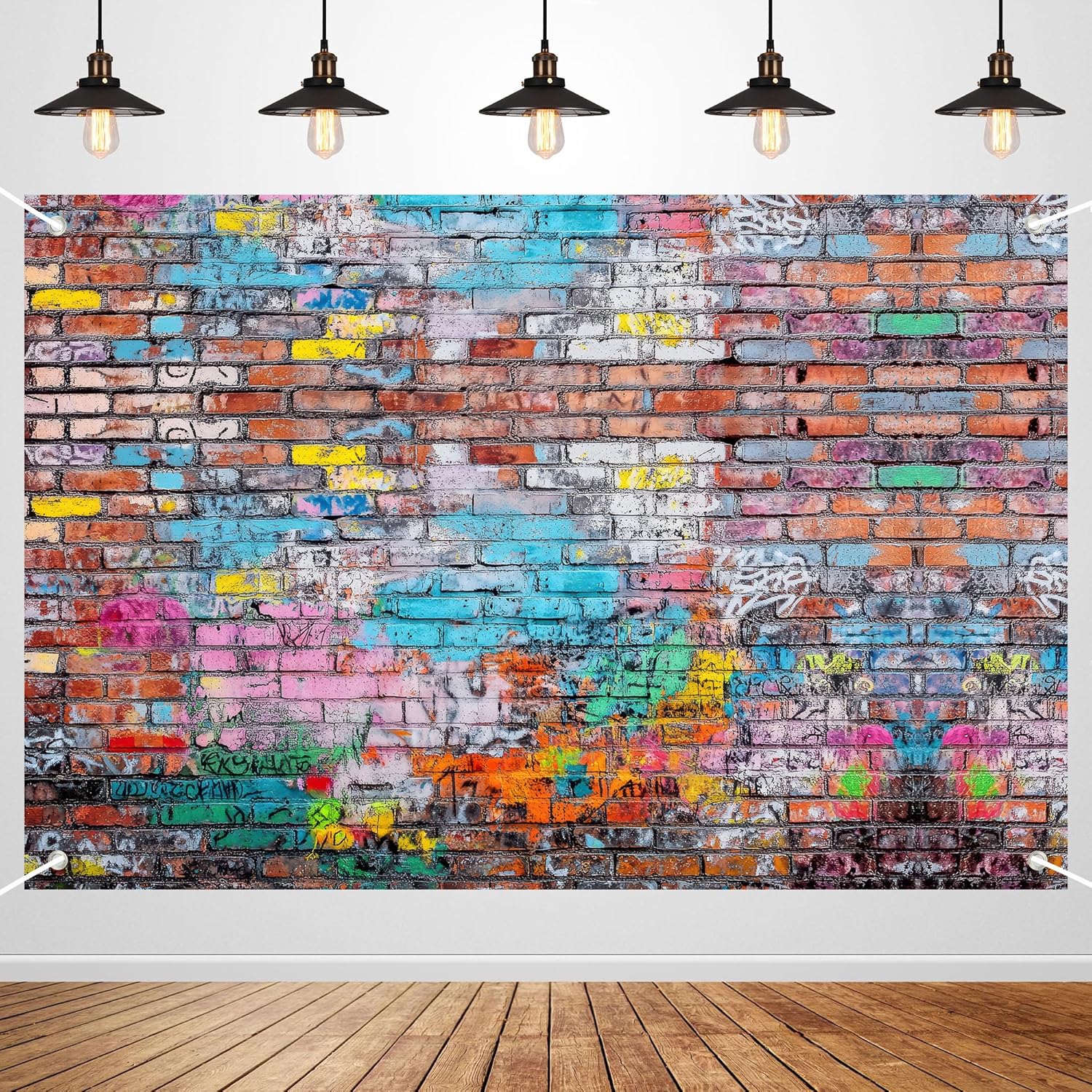 Colorful Graffiti Brick Wall Backdrop Banner - Abstract Street Art Photography Background for Hip Hop Party, 80s 90s Disco, Birthday Wedding Decor, Studio Props & Booth Supplies 98x65 Inch