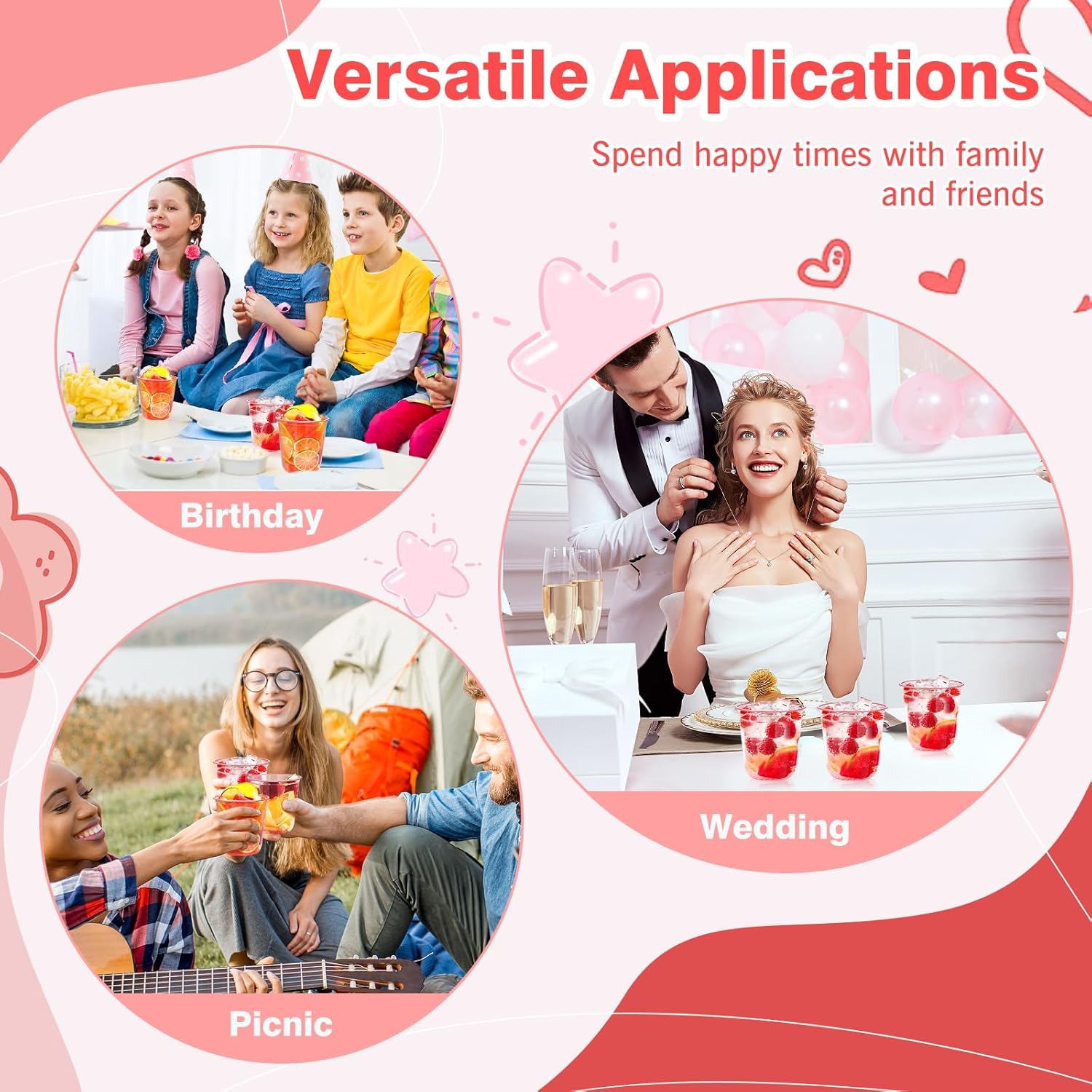 - Wide Application: Our disposable wine glasses are ideal for serving a wide variety of beverages, including champagne, wine, cocktails, juice, coffee, lemonade, soda and mixed drinks. These pink disposable cups are a good choice for countless occasions, such as weddings, birthday parties, family gatherings, holidays, picnics, Valentines, baby showers and any catering event.