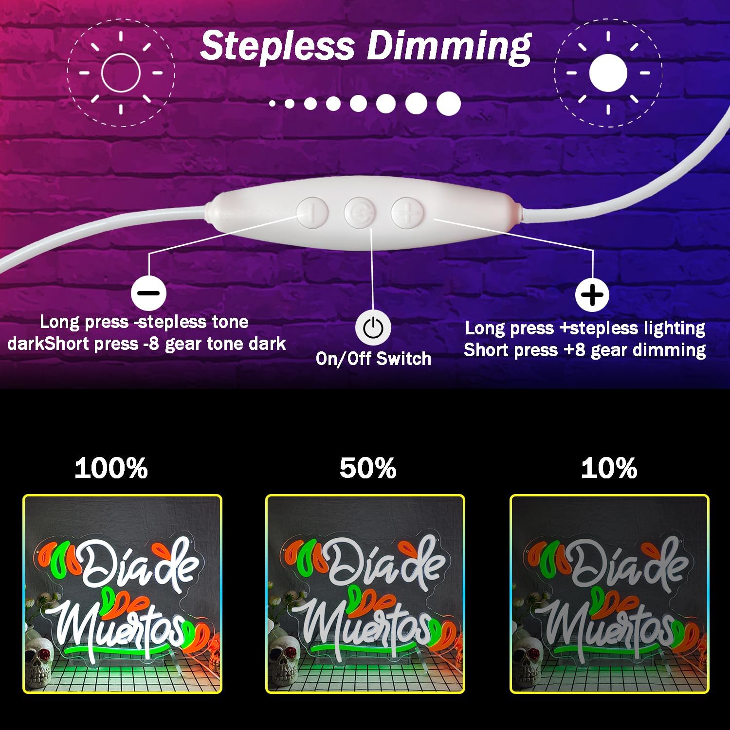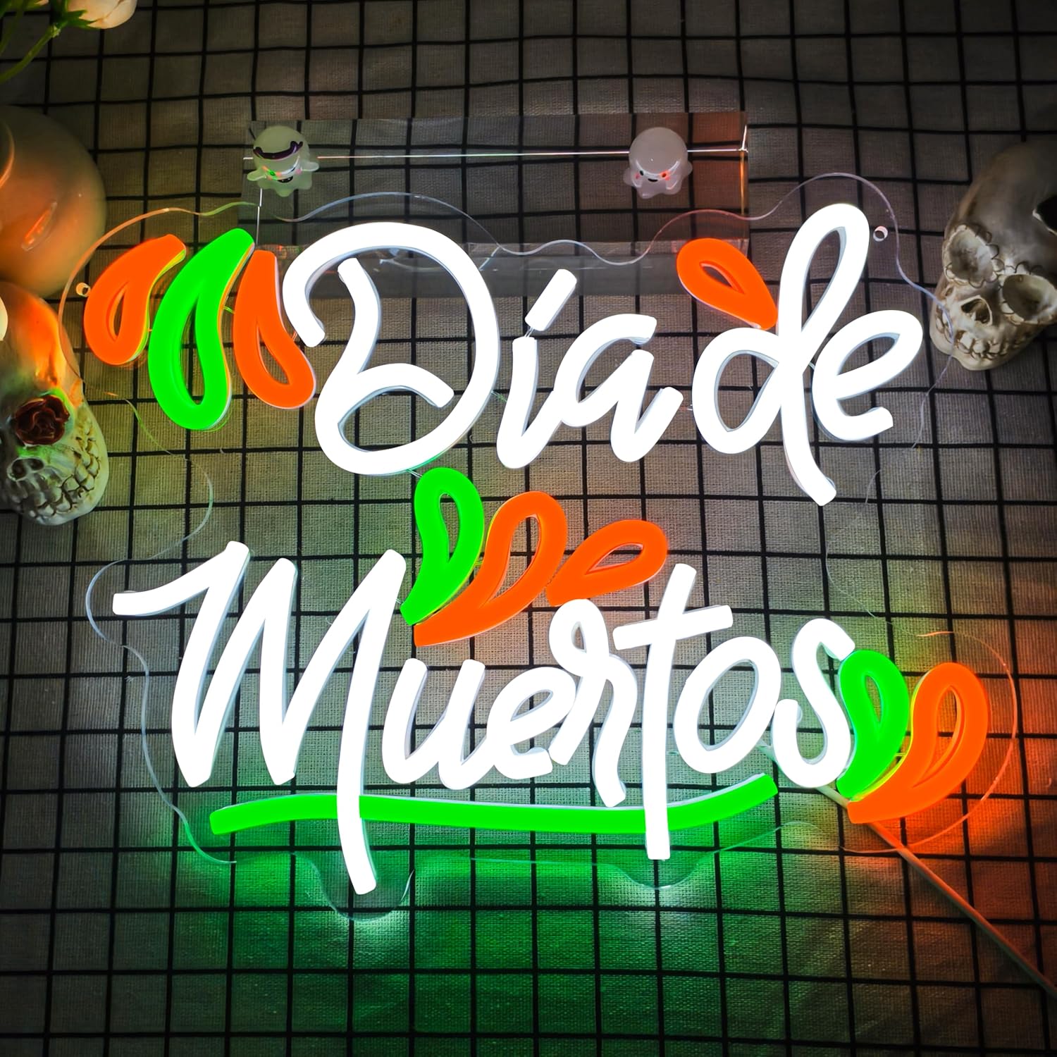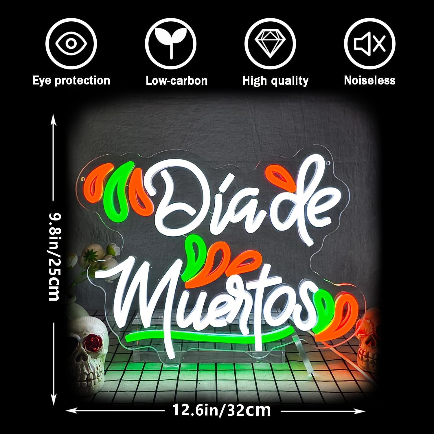 - 【Day of The Dead Theme Design】Celebrate Halloween or Day of the Dead with a Day of the Dead neon sign! Perfect for indoor decorating, it creates a spooky atmosphere and immerses your family in the Halloween and Day of the Dead spirit. Ready to scare and delight all your neighbors and guests. Throw a spooky party!