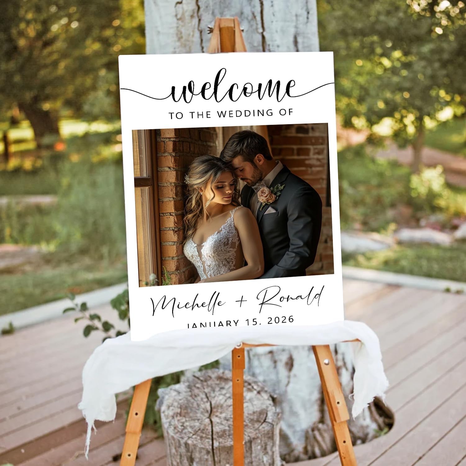 Editable Wedding Welcome Sign with Photo, Personalized Modern Reception Poster, Minimalist Printable Welcome Board