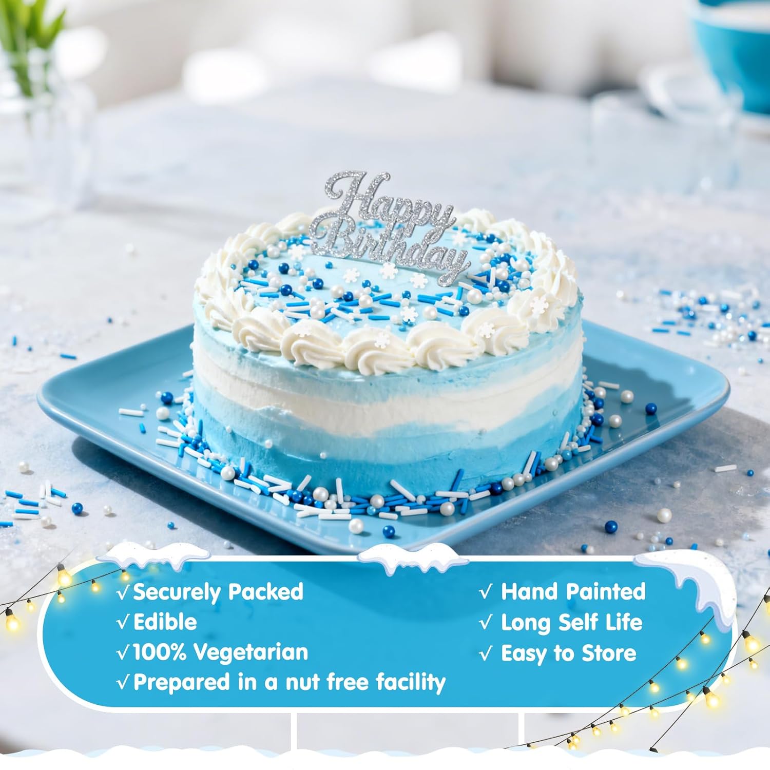 Edible White Snowflake Sprinkles,Blue White Nonpareils Pearls Jimmies Mix Sugar Sprinkle,100g,Snow Block Candy for Cake Decorating,Holiday Cake Decorations,Dessert,Cookies,Christmas Winter Baking Decorating