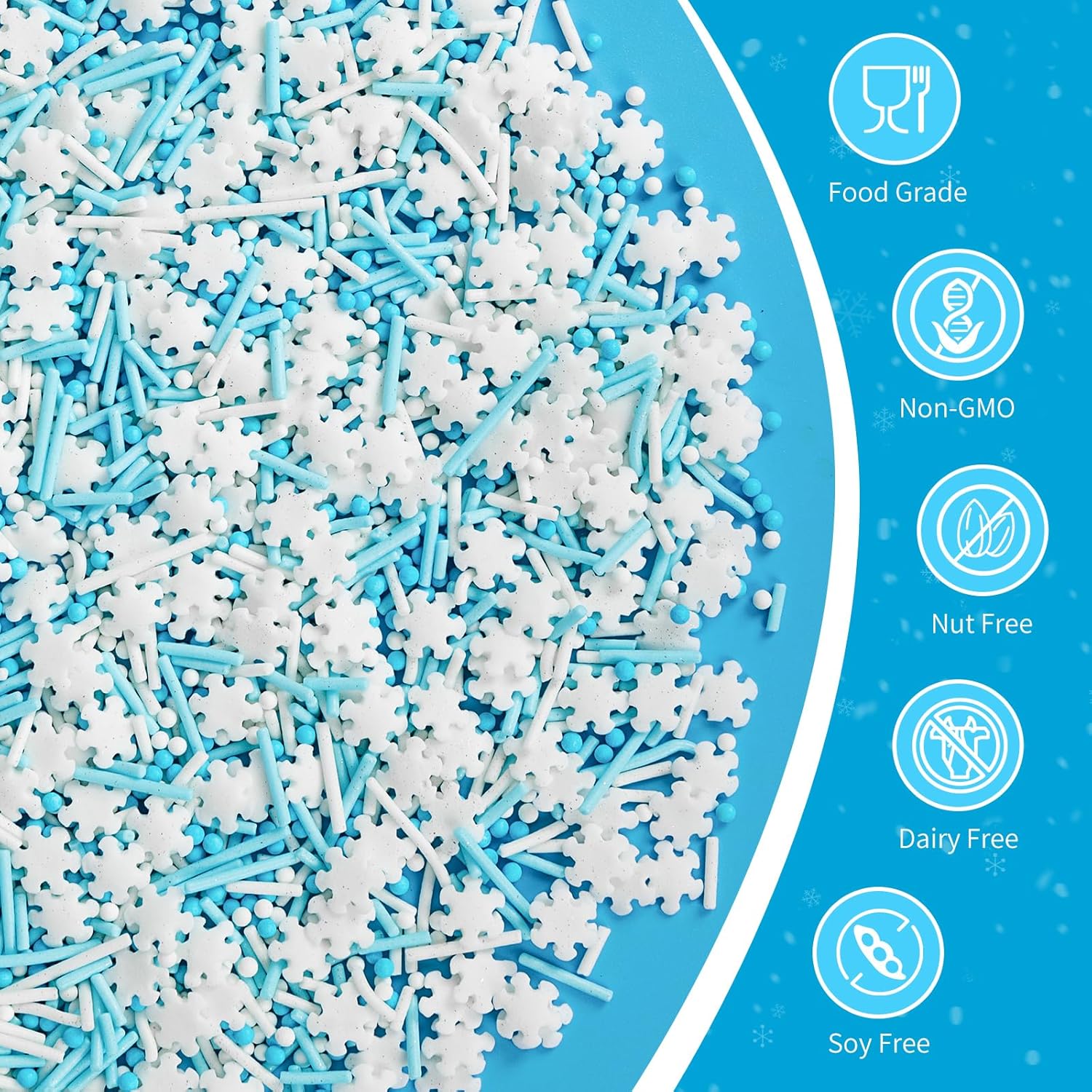 - Romantic Snowflakes Sprinkles with food-grade raw materials: Preservative Free, Nut Free, Dairy Free, Chemical Free, Soy Free, Non-GMO. Produced using food-safe standards, the process does not come into contact with allergenic substances and uses Tamper-proof food label