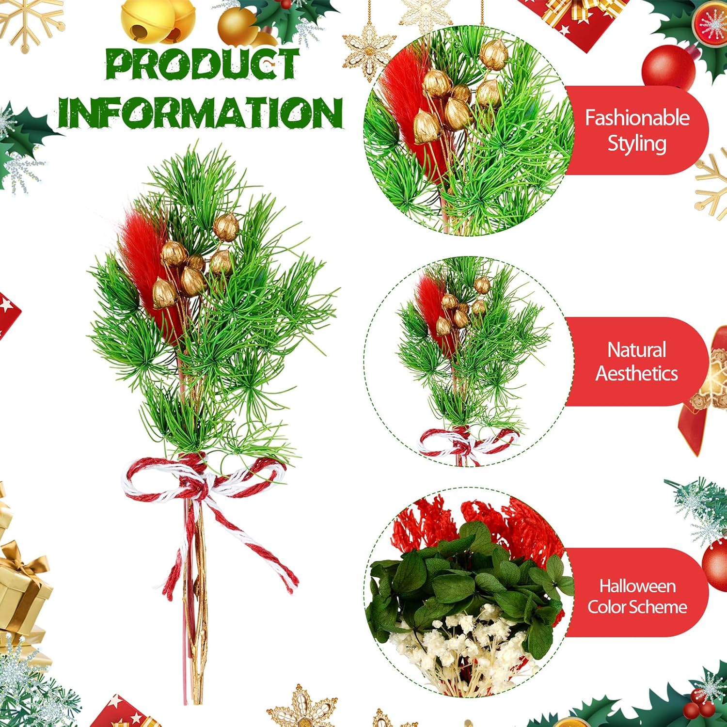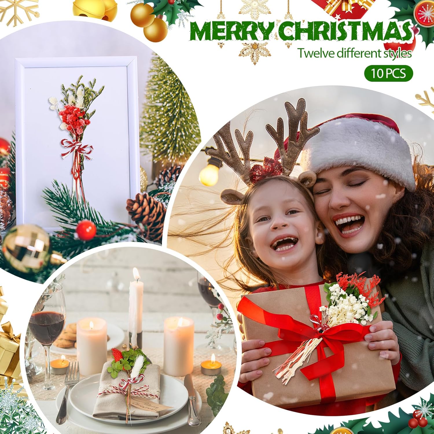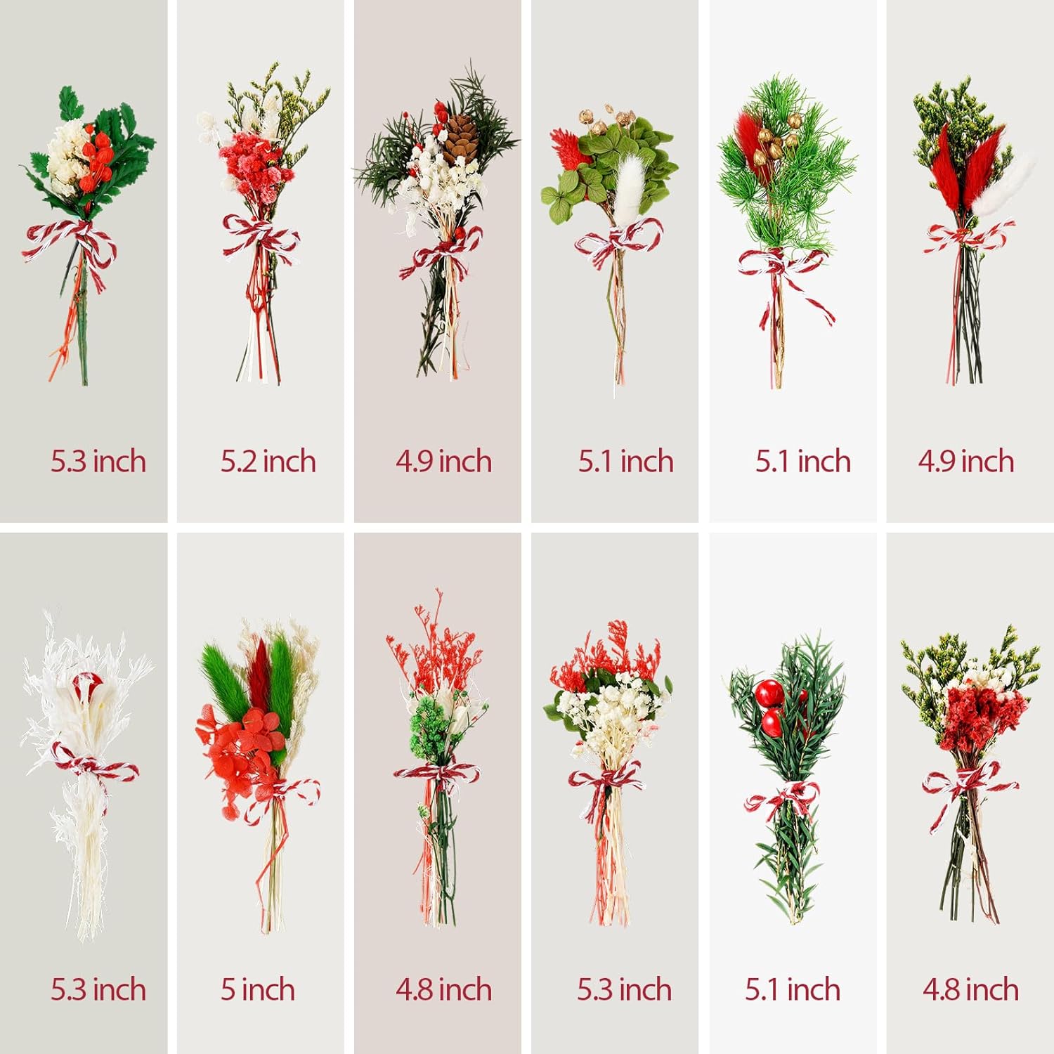 10/12/24/36 Pack Mini Dried Flowers for Vase Wedding Various Mini Bouquet Dried Small Wildflowers Natural Flowers Bulk for Crafts DIY Decor (12, Christmas Color)
