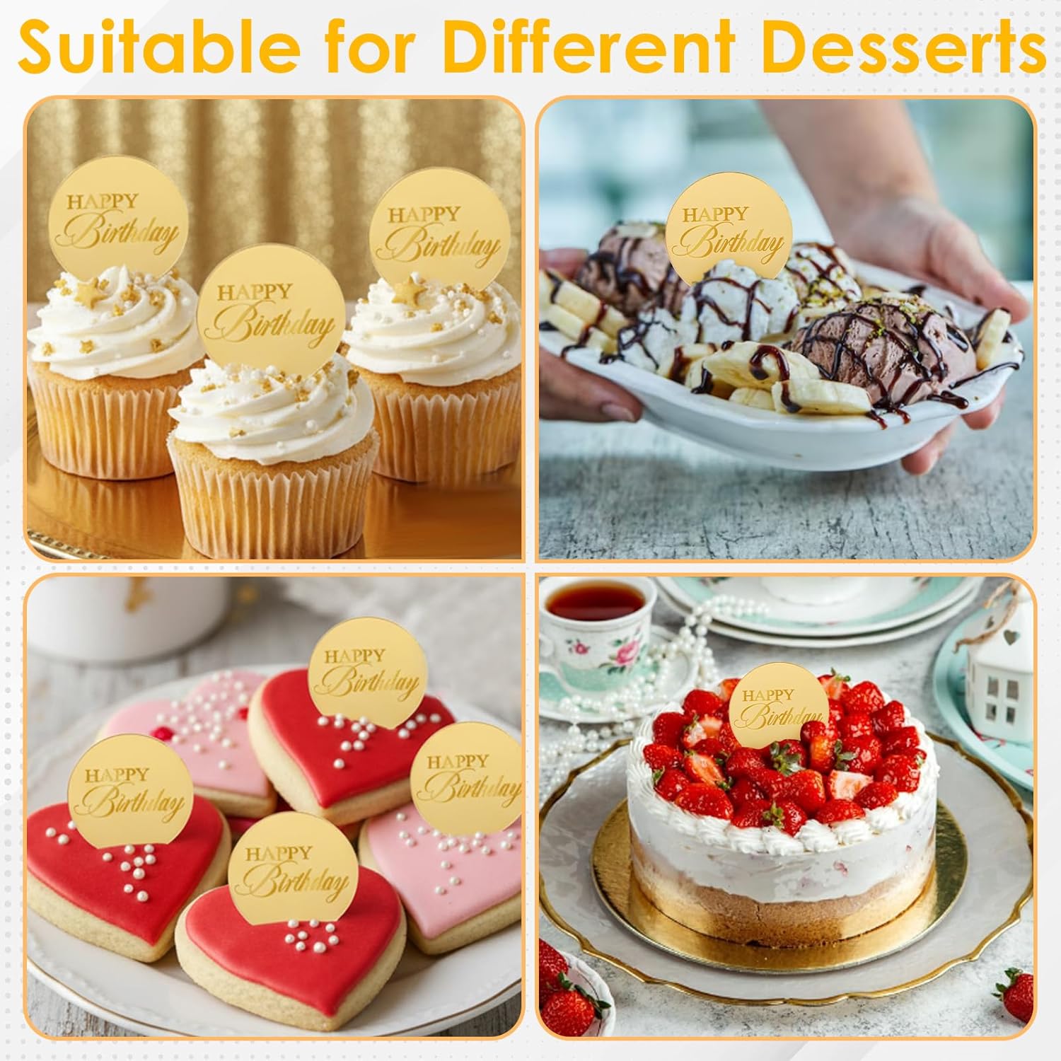 - 【Package Included】You will get 20 birthday cake toppers, round in shape, with "Happy Birthday" printed on the gold cupcake toppers.