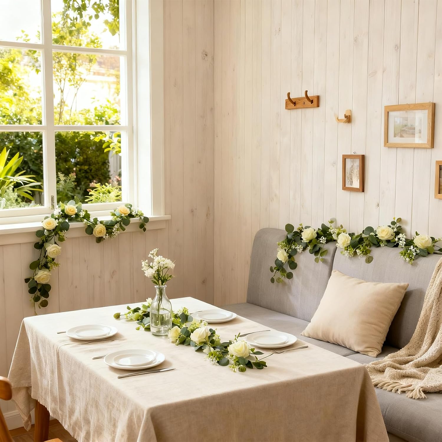 - Lifelike Romantic Appearance: The artificial floral garland is made from high-quality silk material. These floral garlands feature intricate details such as clear veining and natural hues, closely mimicking real foliage. The artificial roses are fade-resistant and easy to clean, ensuring they remain vibrant and beautiful for years.