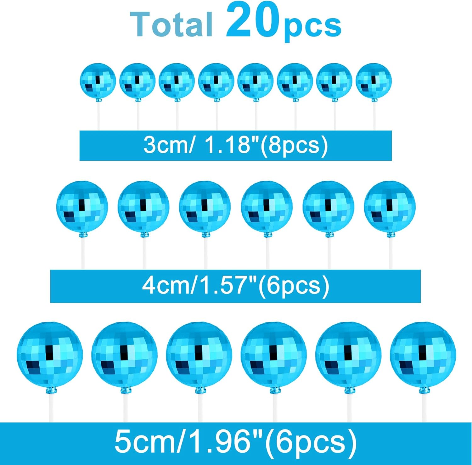 - Package includes: 20 pcs blue disco balls for cake decorations. there are 8 balls with a diameter of 1.18 inches/ 3 cm, 6 balls with a diameter of 1.57 inches/ 4 cm,6 balls with a diameter of 1.96 inches/ 5 cm.