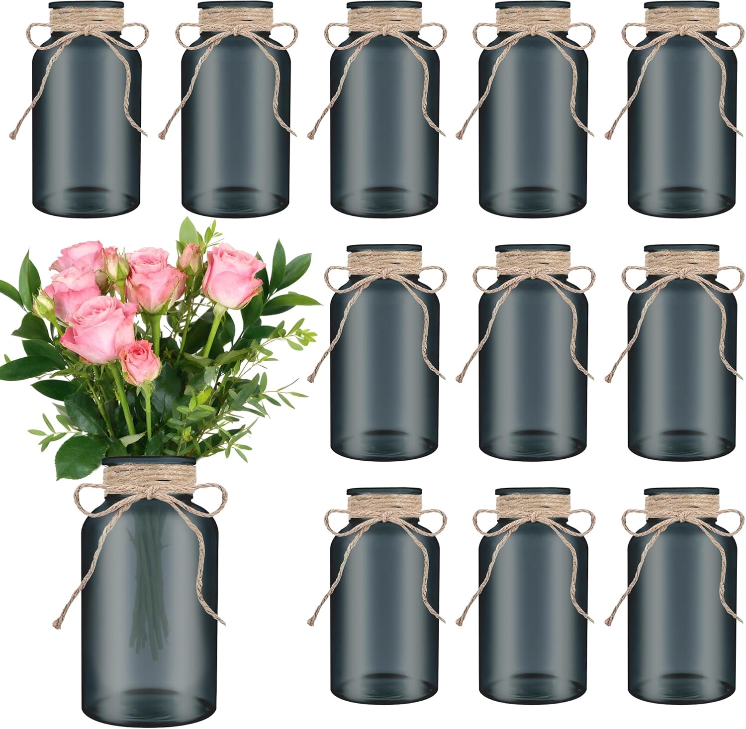 Vintage Glass Flower Vase,12 Pack Farmhouse Black Glass Centerpiece Vases Mason Jars for Halloween Weddings, Parties & Home Decor Bulk (12, Black)