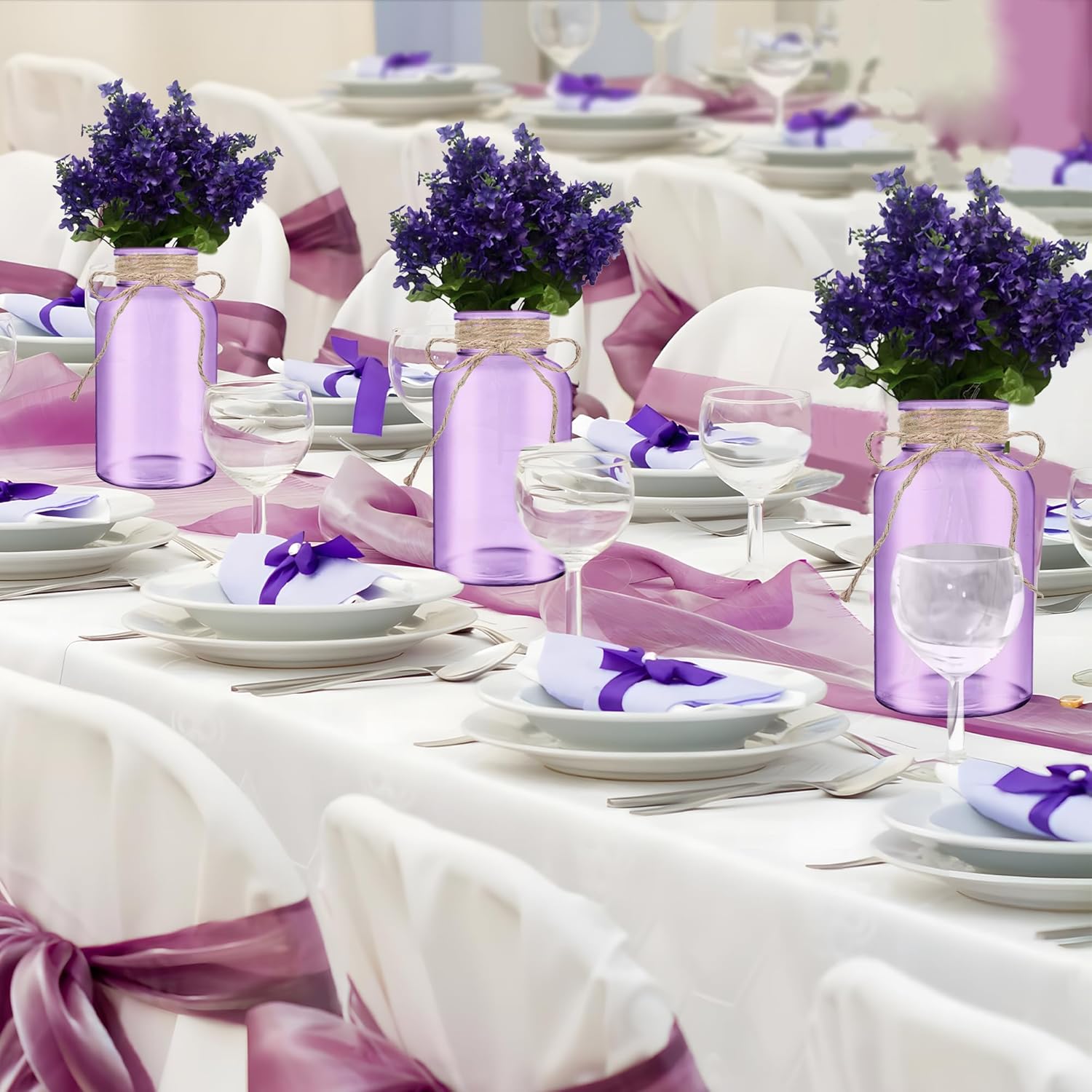 - 🏺 Commercial-Grade Bulk Vases: 6-pack vintage glass centerpiece vases designed for weddings, banquets, and catering businesses. Purple mason jars offer reusable rustic charm for floral arrangements or candlelit tables