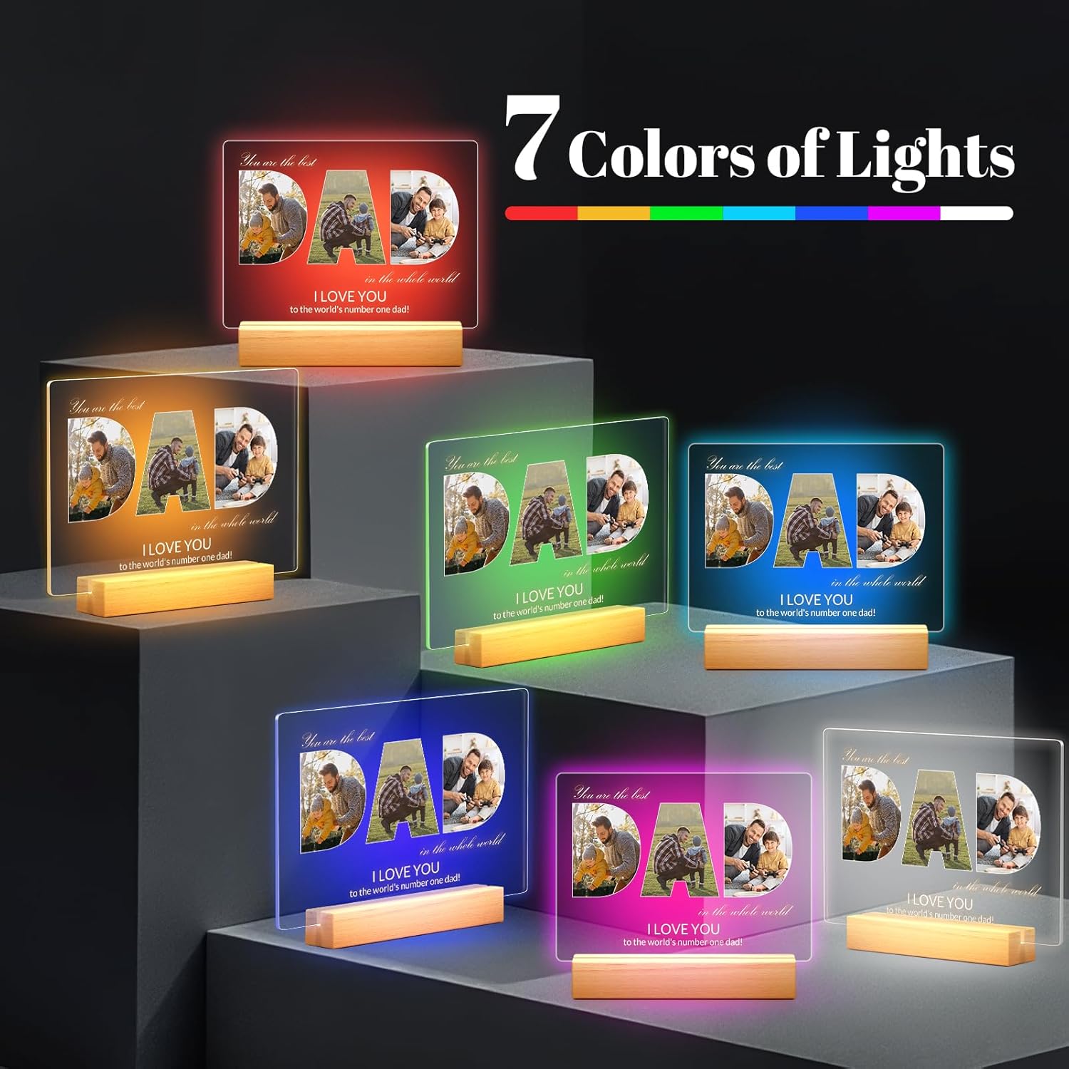 Personalized Gifts for Dad from Daughter & Son, Custom DAD Picture Frames with Photo, Customized Photo Frame with Night Light, Custom Birthday Gifts for Dad, Baby, Kids, Family