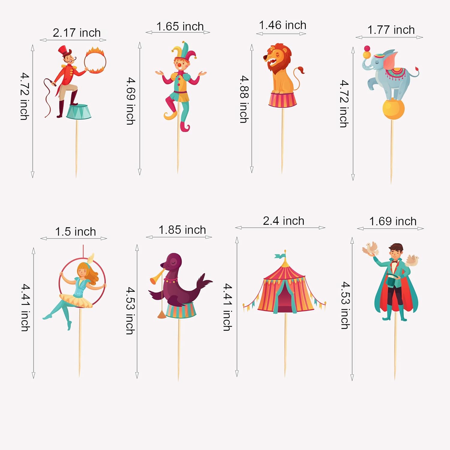 - Package include 24pcs circus cupcake toppers, size fits most cake and is the ideal for cake.
