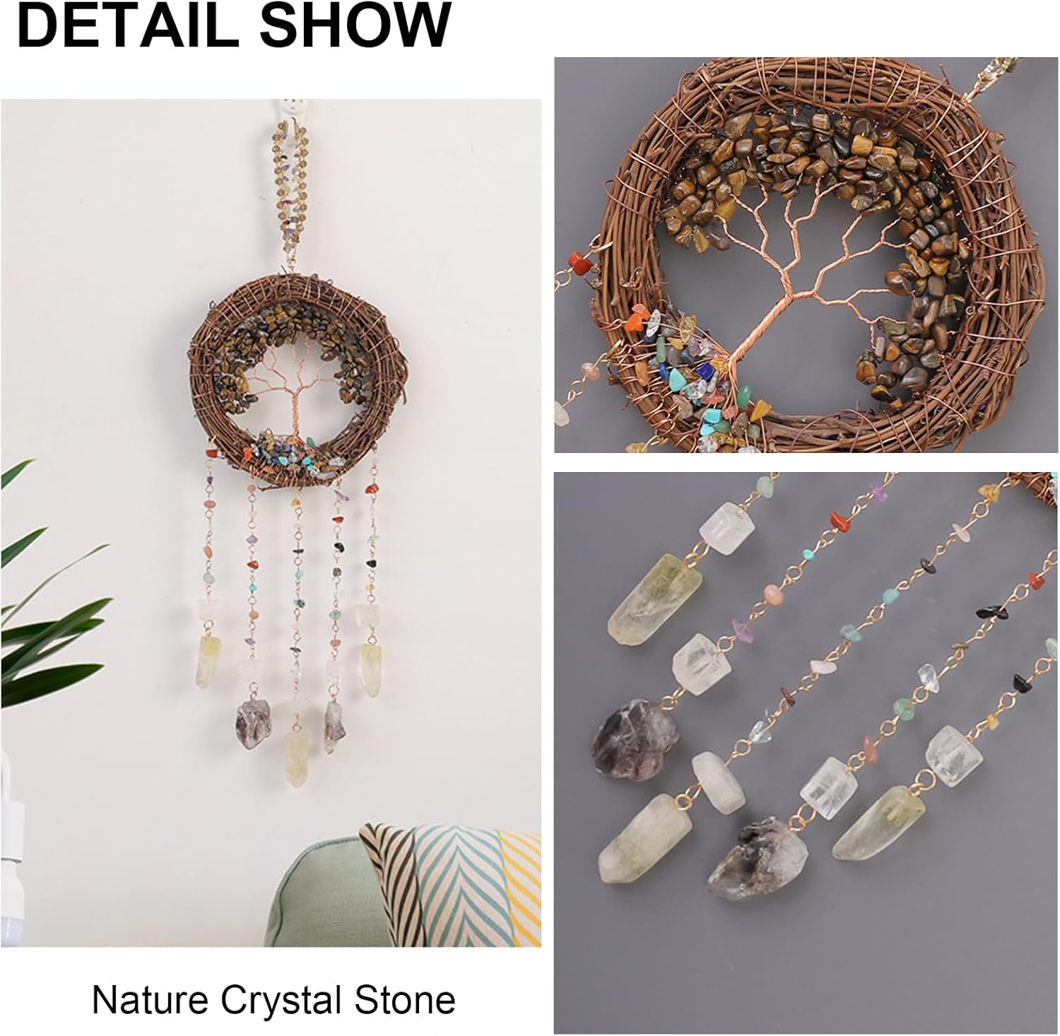 - 🌈Superior Material: The shining window hanging tree of life suncatcher are made of premium quality crystal and vine wreath, which is delicate and durable. They will create the most beautiful reflections when the sunlight or any other kind of light hits them.