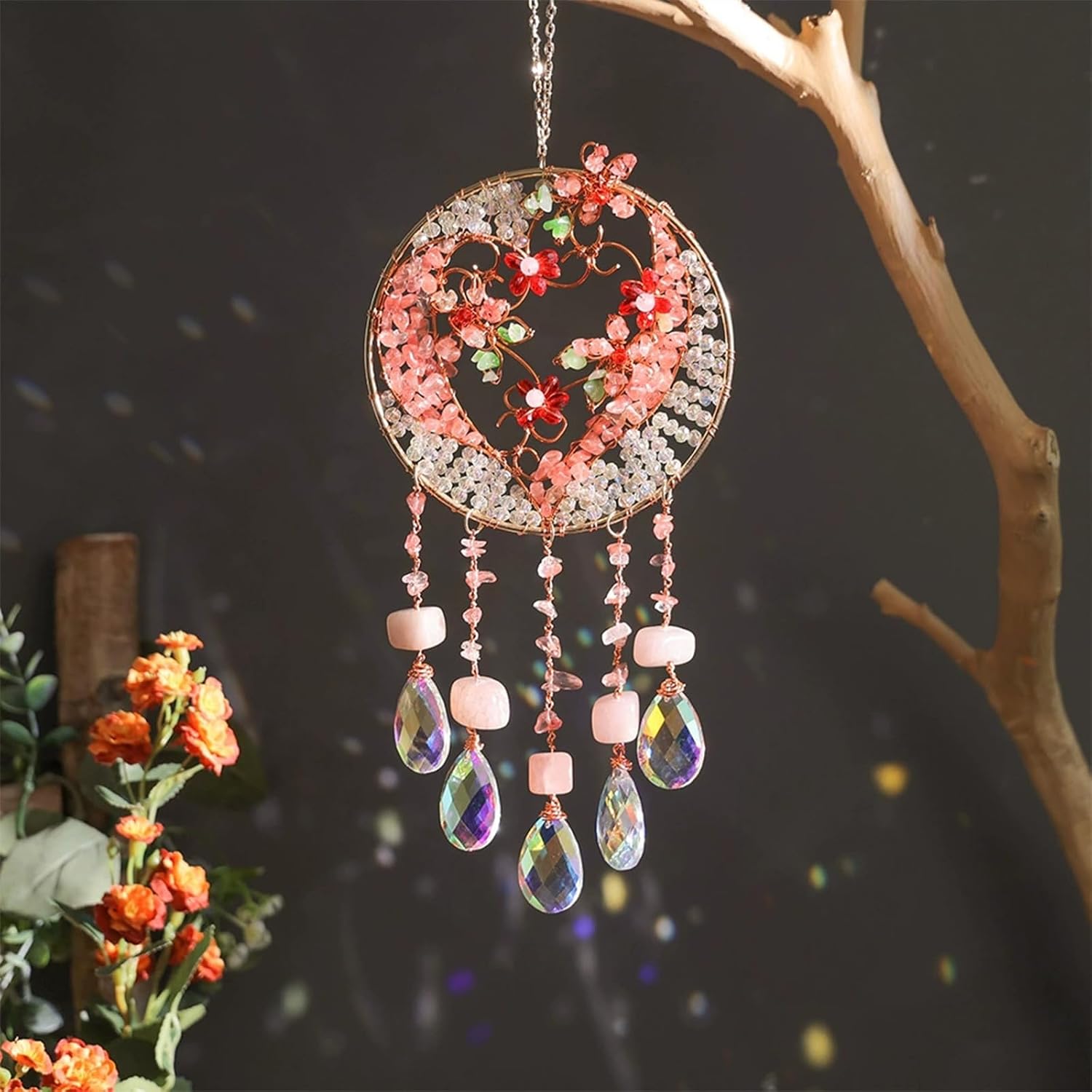 TUOKING Crystal Suncatchers for Window Pink Love Dreamy Crystal Natural Stone Sun Catchers Rainbow Maker Ornament Gift Home Garden Decoration
