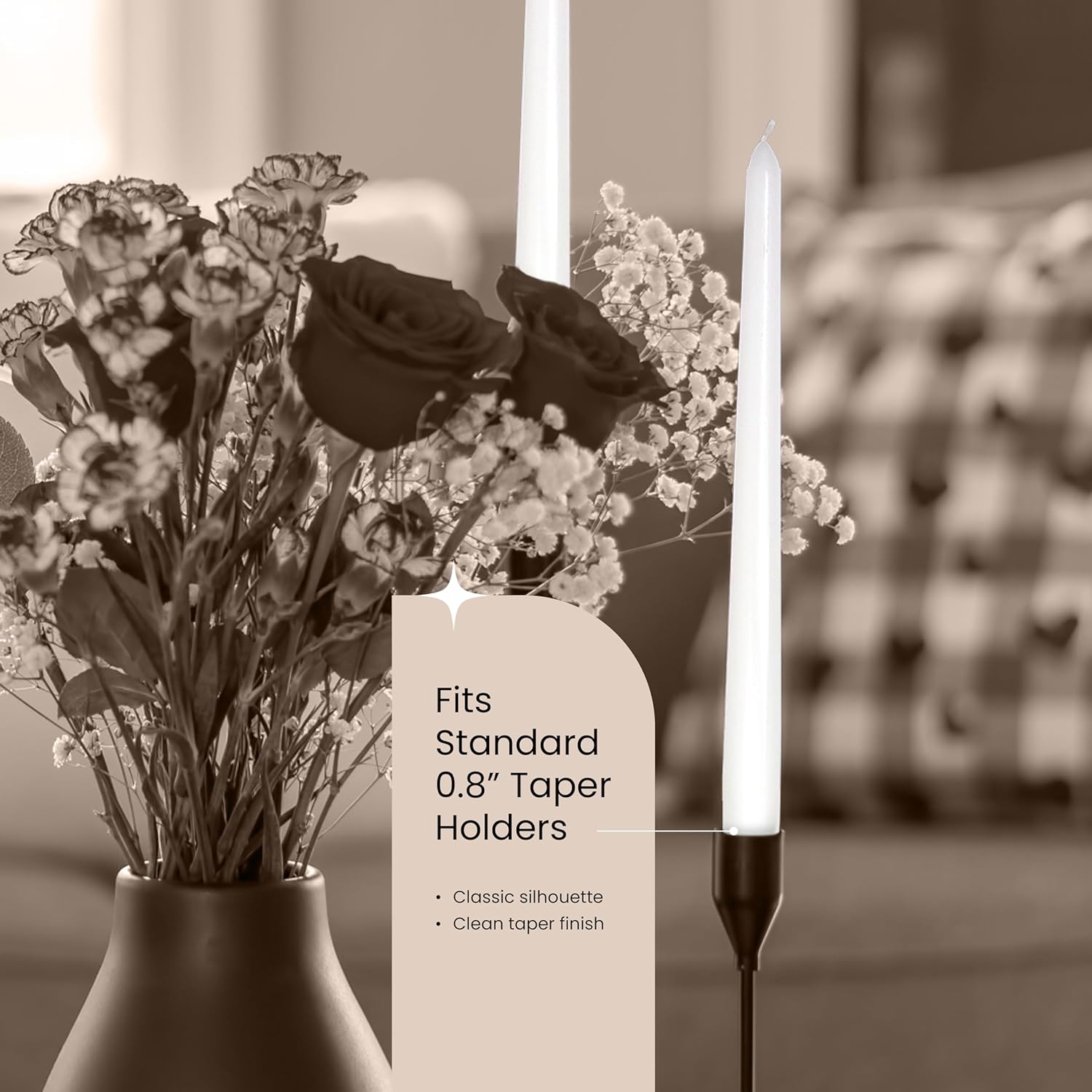 - Classic Fit for Candle Holders – Built with a tapered 0.8” base, these long white candles fit snugly into most standard candlesticks. Perfect for dining tables, event centerpieces, or meditation spaces, they provide stable, reliable light every time.