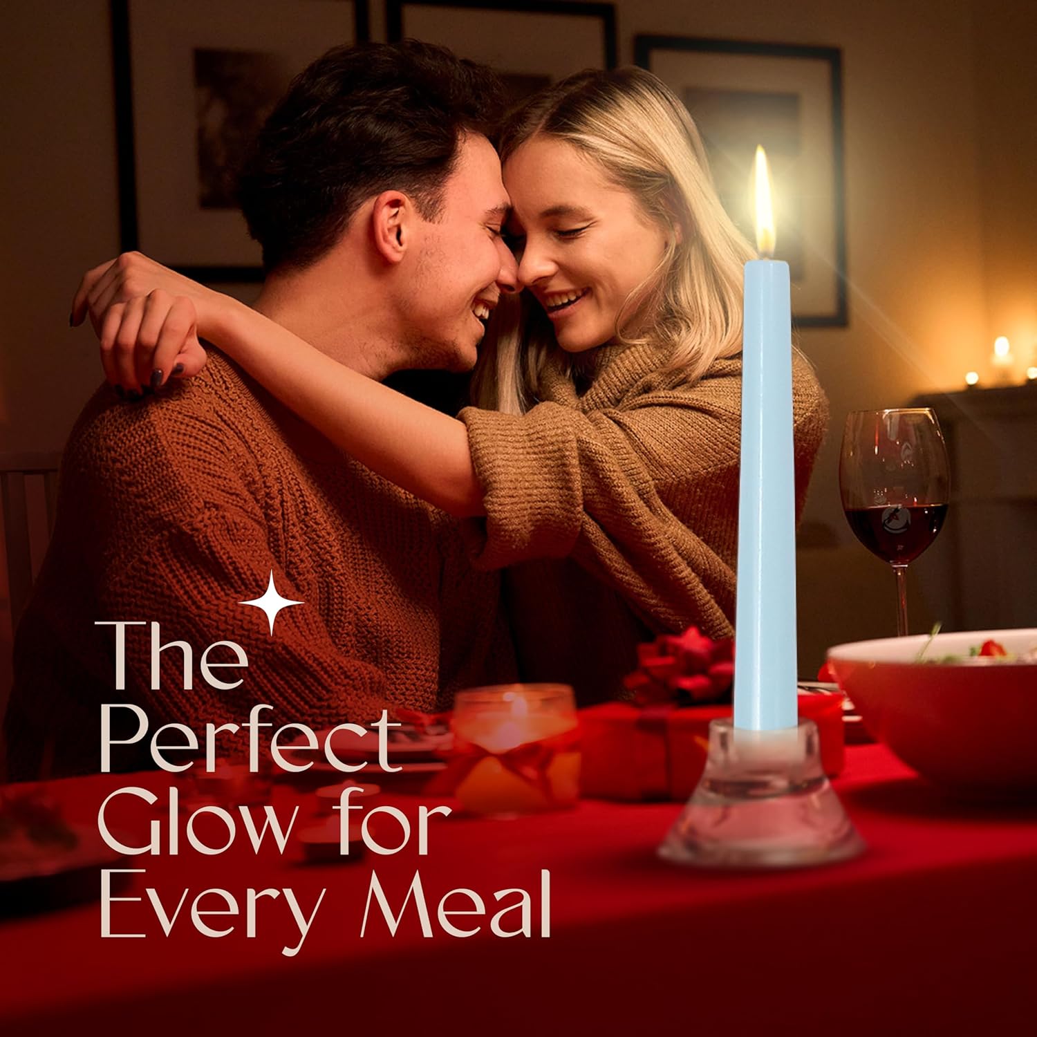 - Secure Fit for Most Holders – Designed with a 0.8” tapered base, these light blue tapered candles fit securely in standard candlesticks. Perfect for dining tables, event centerpieces, mantels, or seasonal décor with a fresh pastel glow.