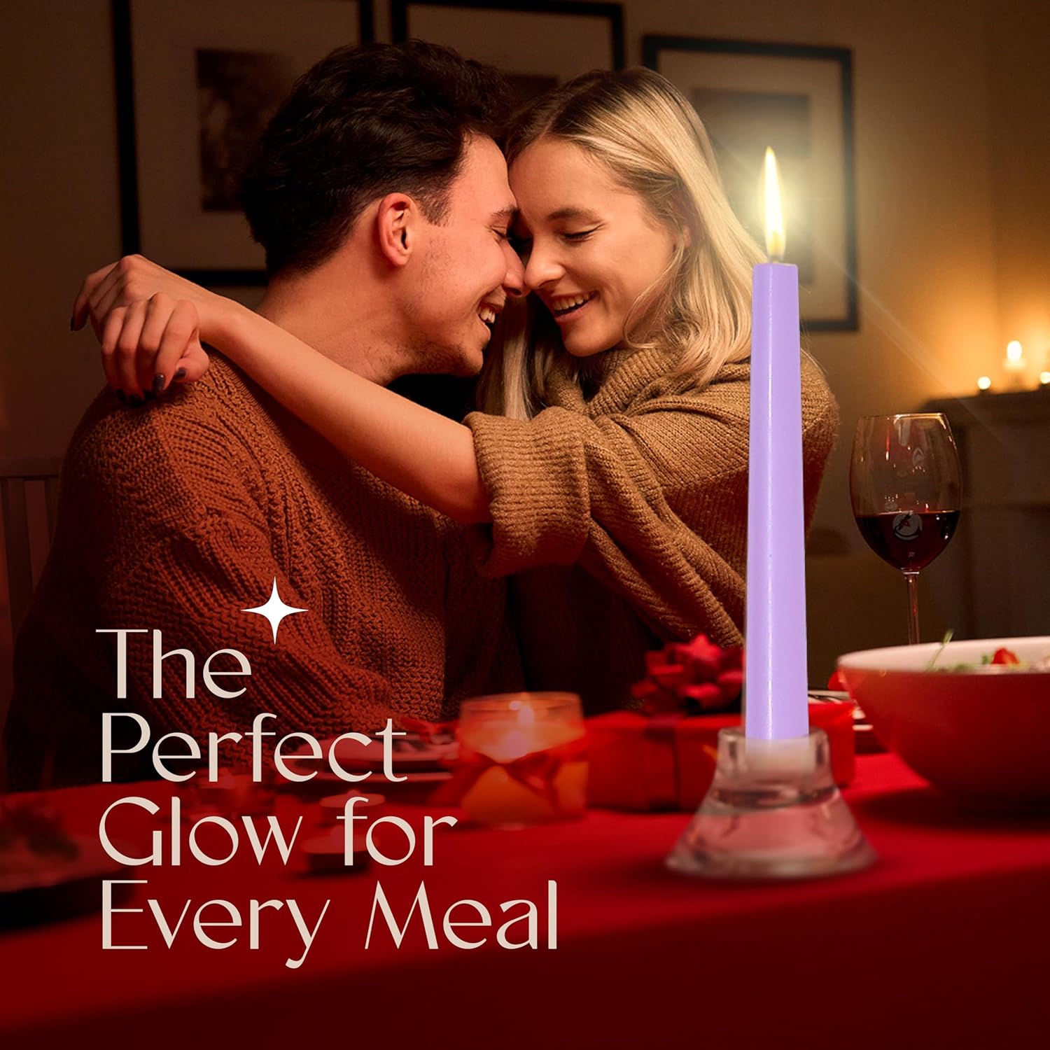 - Classic Fit for Secure Display – Designed with a tapered 0.8” base, these long light purple candles fit most candlesticks securely, bringing stable and beautiful light to mantels, tablescapes, and seasonal décor.