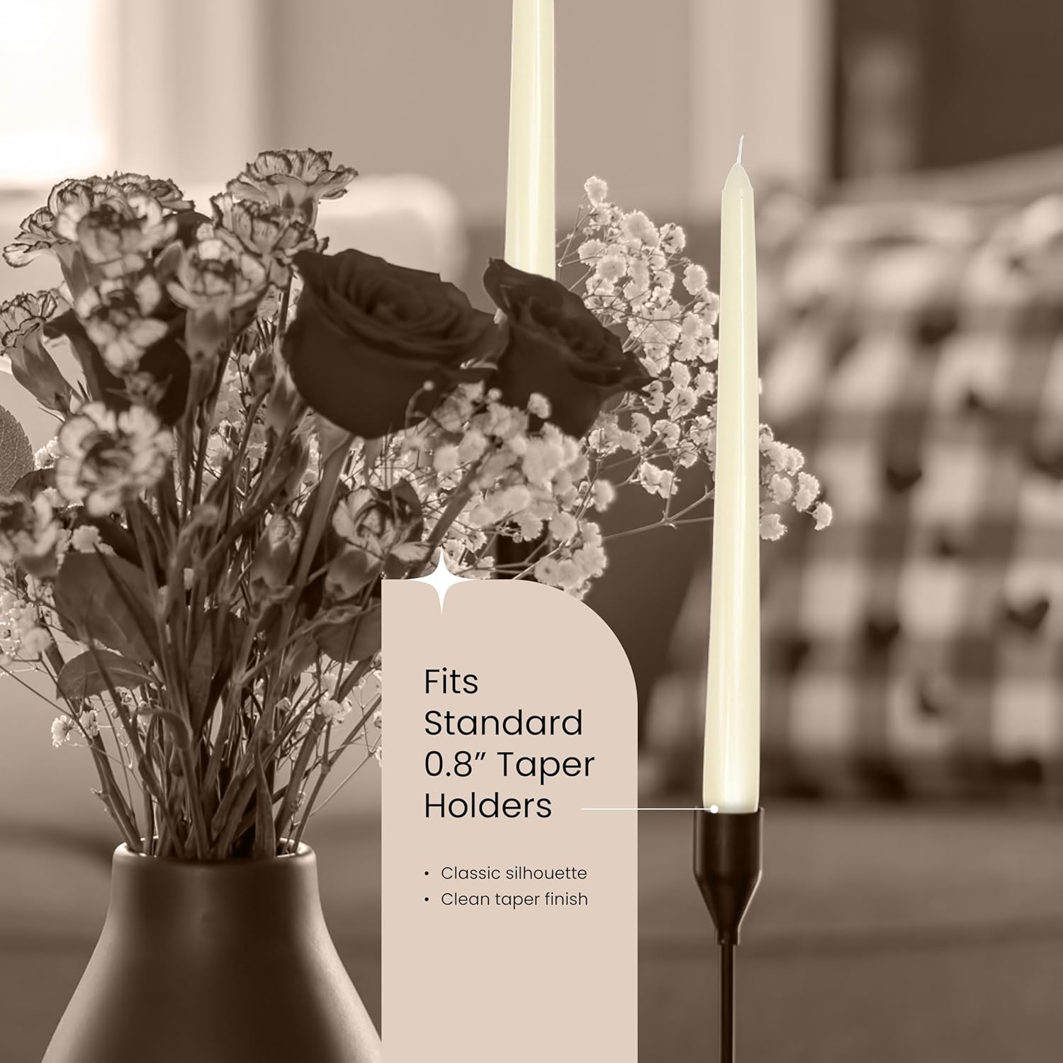 - Secure Fit in Most Candle Holders – Designed with a classic 0.8” tapered base, these long candles fit most candlesticks securely. Ideal for dining tables, mantels, or event centerpieces, ivory stick candles offer stable, dripless light for any occasion.
