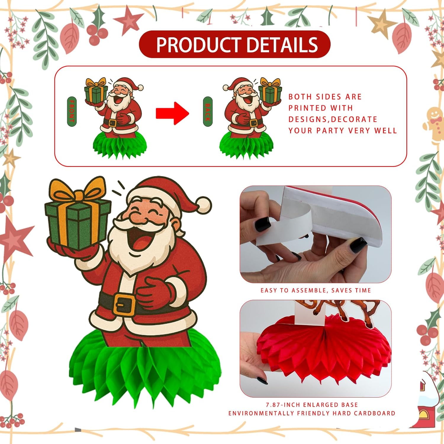 - Christmas-Themed Design:Our Christmas Honeycomb Centerpieces set includes 12 pack Christmas Party centerpieces, which designed with Christmas element such as Christmas Tree,Snowman, Gingerbread,Reindeer,Christmas stocking and so on. These will ensure you creates an authentic Christmas ambiance.