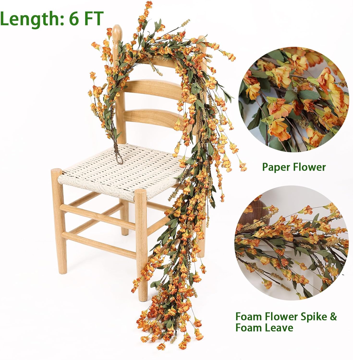 Mizii Fall Garland Artificial Flower Garlands 6 Feet Fake Wildflower Floral Garland Hanging Vines Flowers Decorations for Table Centerpieces Room Wall Fireplace Wedding Fall Decor (Burnt Orange)