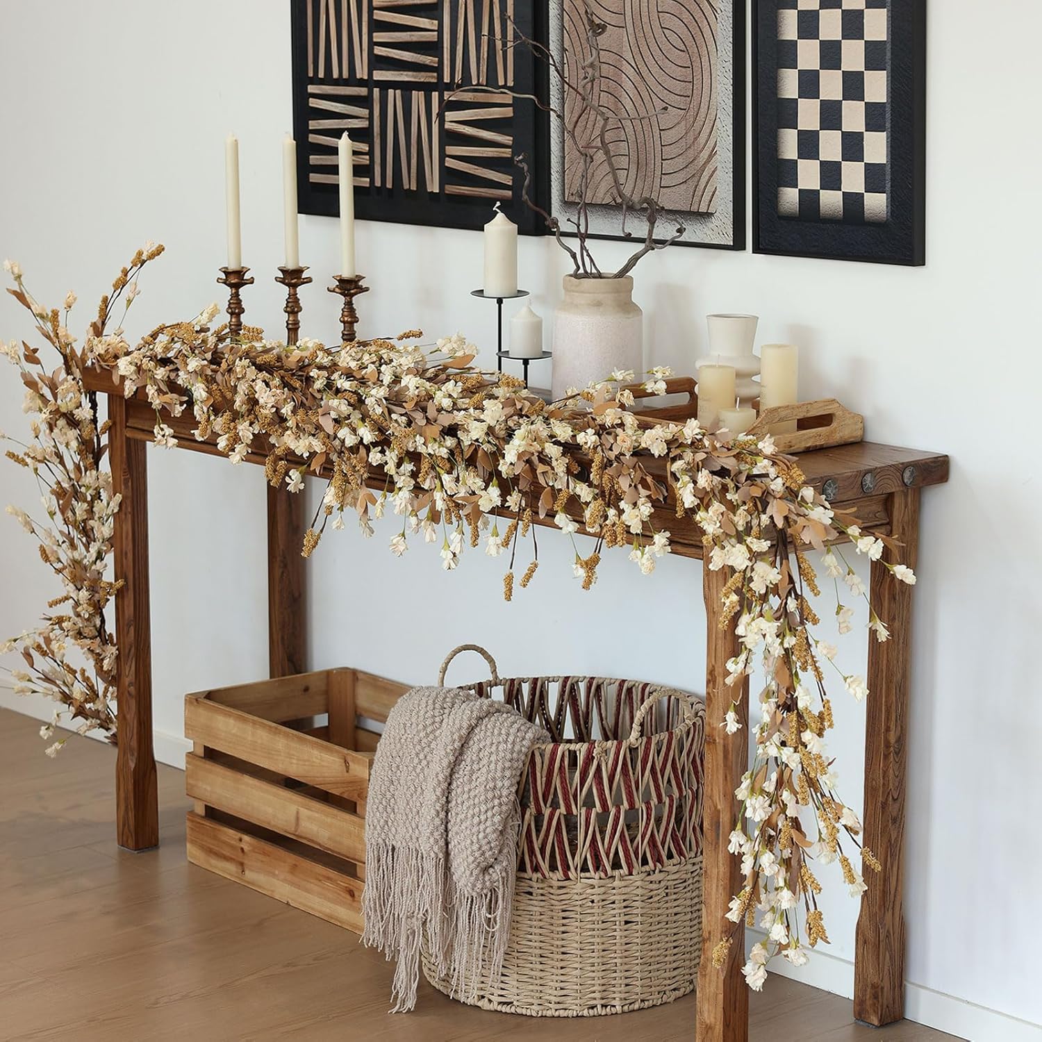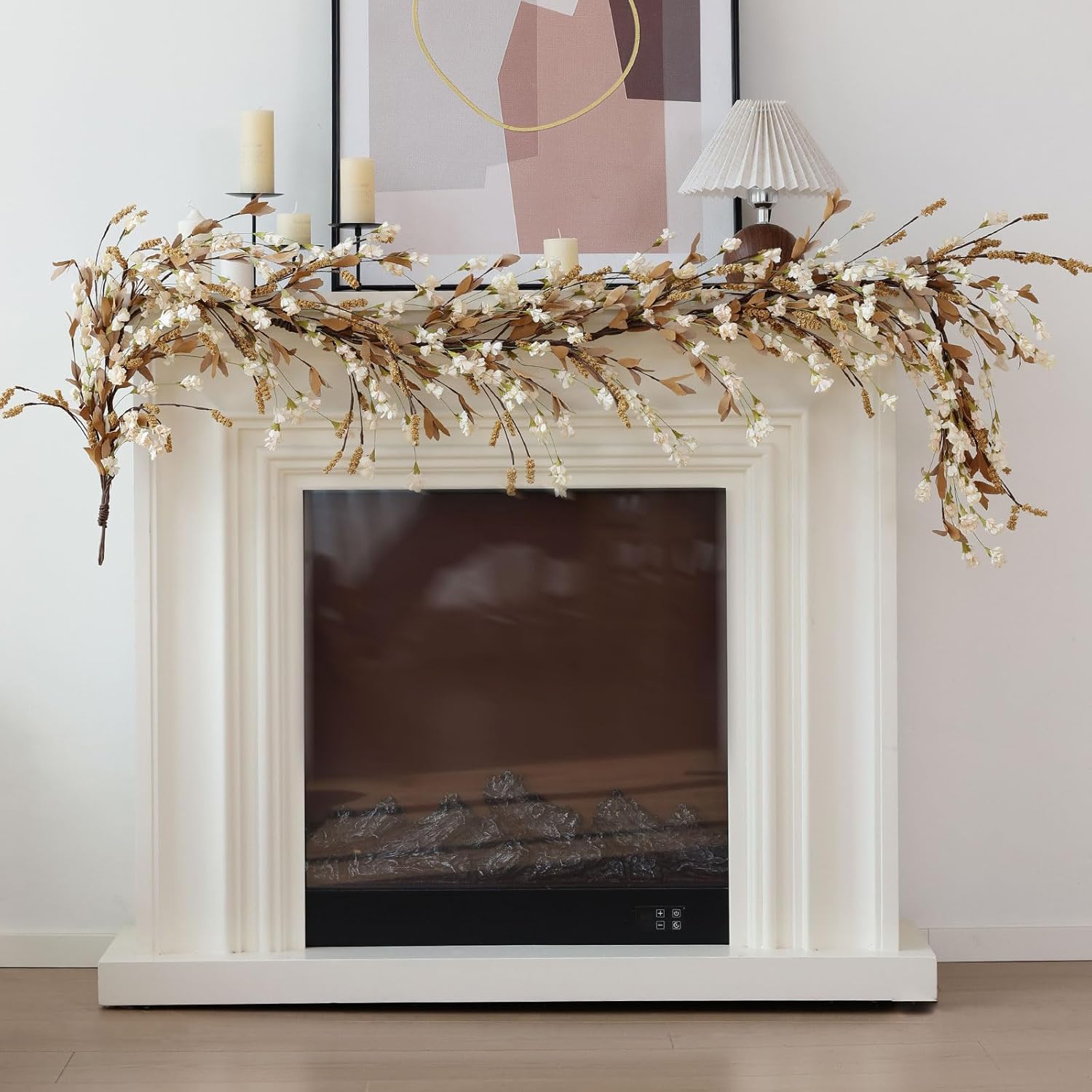Mizii Fall Garland Artificial Flower Garlands 6 Feet Fake Wildflower Floral Garland Hanging Vines Flowers Decorations for Mantle Table Centerpieces Room Wall Fireplace Wedding Fall Decor (Beige)