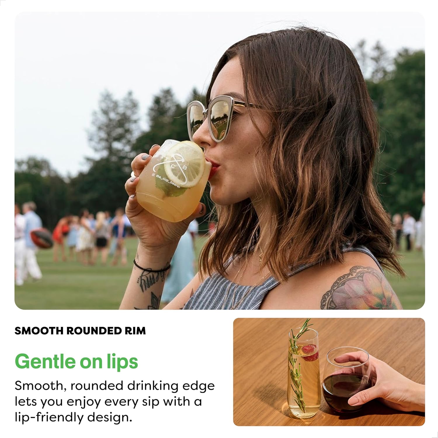 - No glass = no stress. 100% recyclable, guaranteed to never break or crack, and crystal clear. Just add Friends!