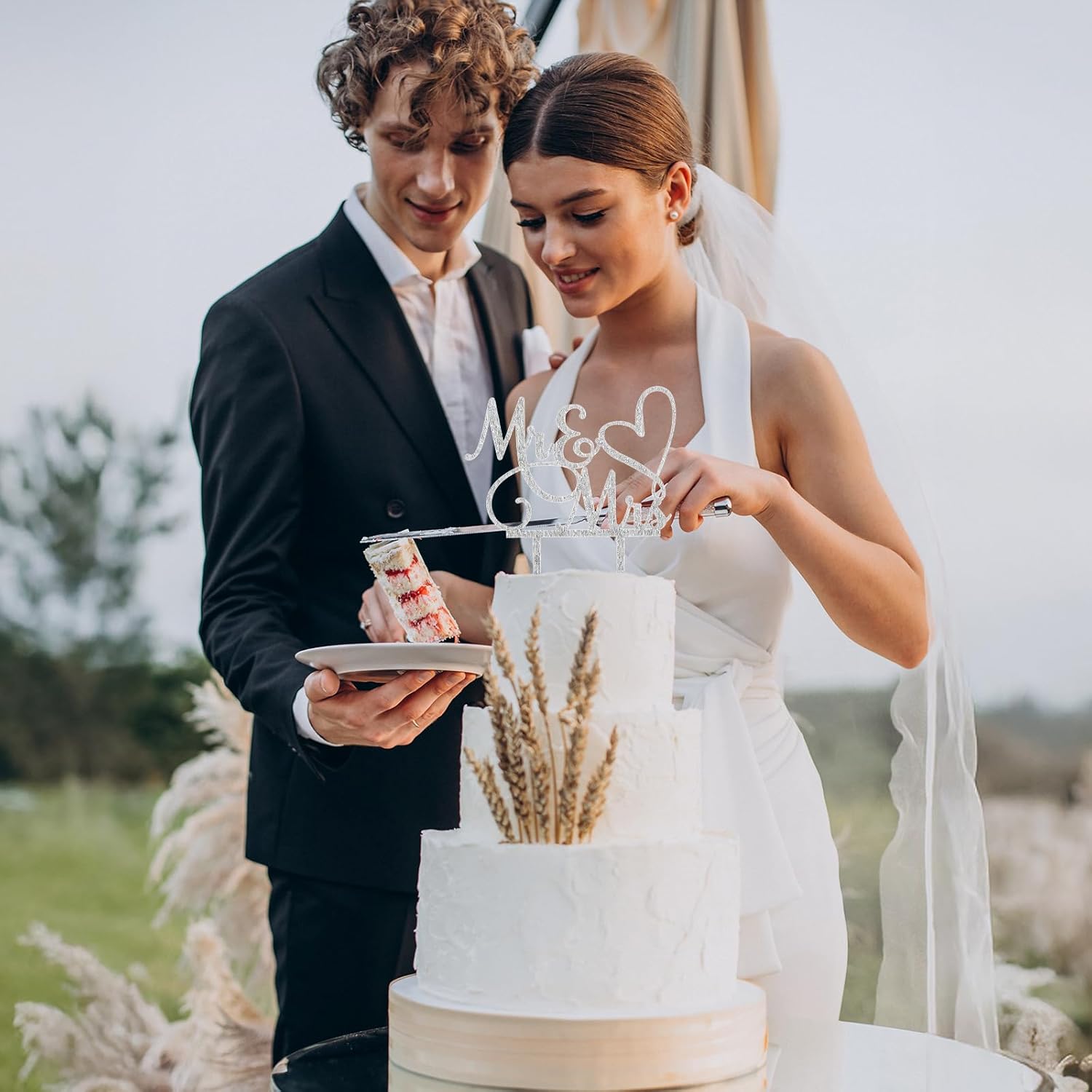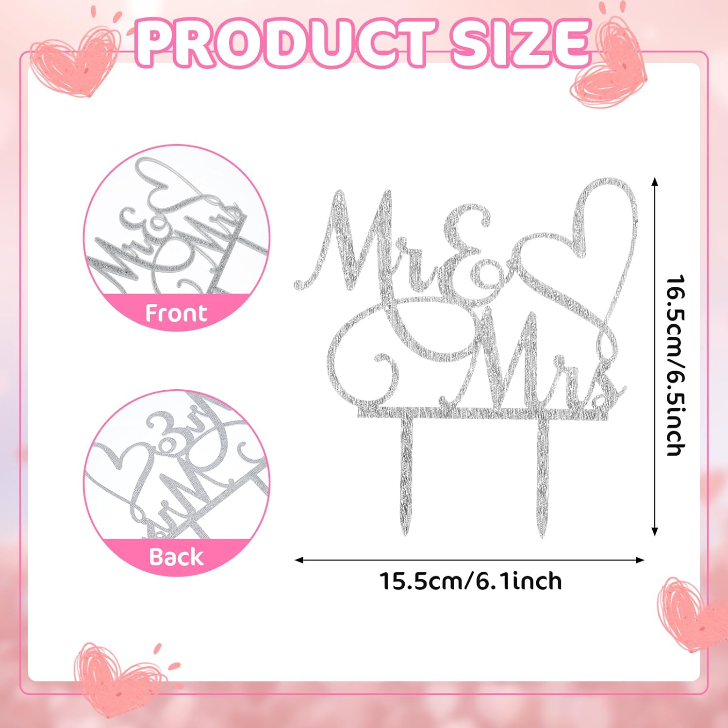 - 【Mr and Mrs Cake Topper】:You will receive one exquisitely crafted silver acrylic wedding cake toppers, ready to enhance your wedding cake.