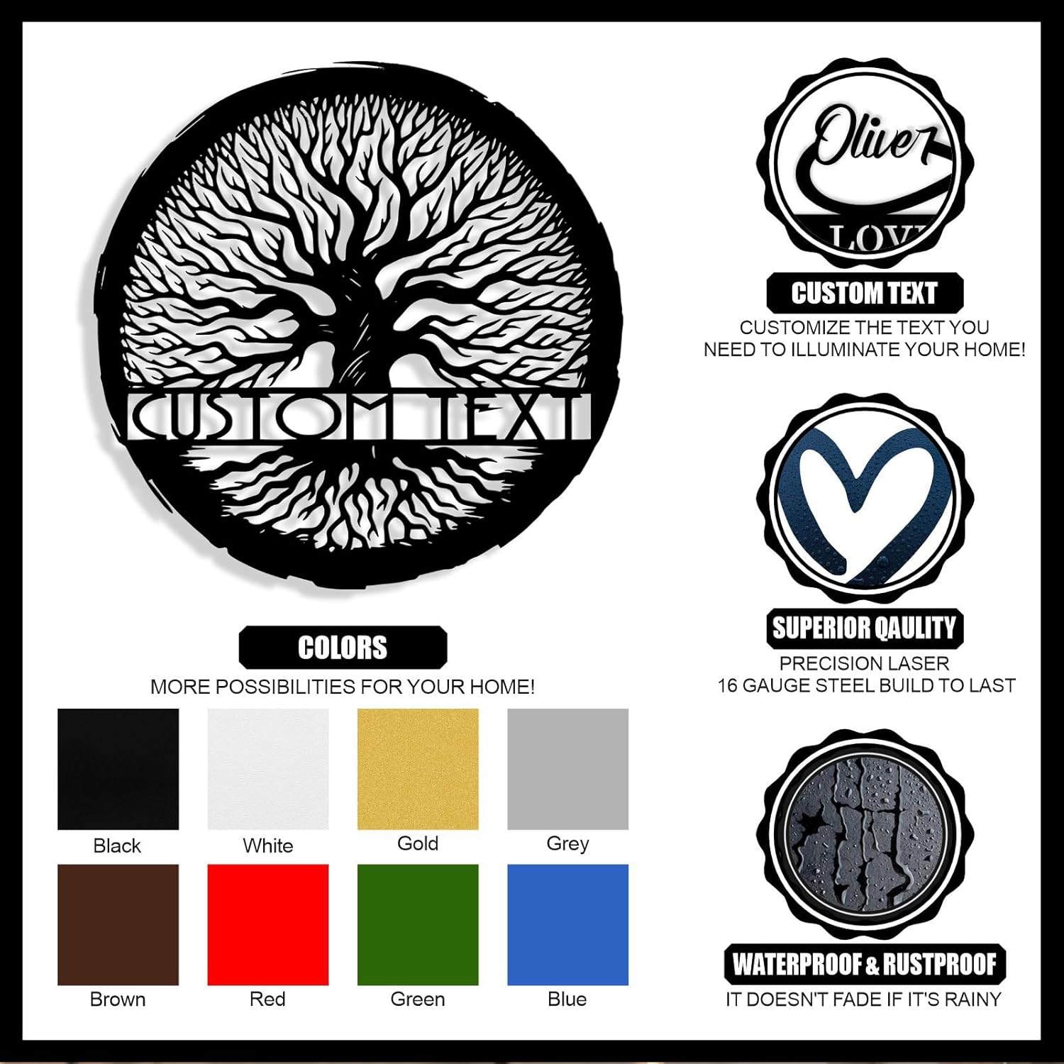 - Personalized & Name Customizable -- Click "CUSTOMIZE NOW" and enter the name or text. Our personalized Tree of Life Metal Sign designs make it unique, beautiful and elegant to create a perfect personalized family name sign for you. This custom last name sign is customized with your last name, first names and established date, will look beautiful indoor and outdoor any home.