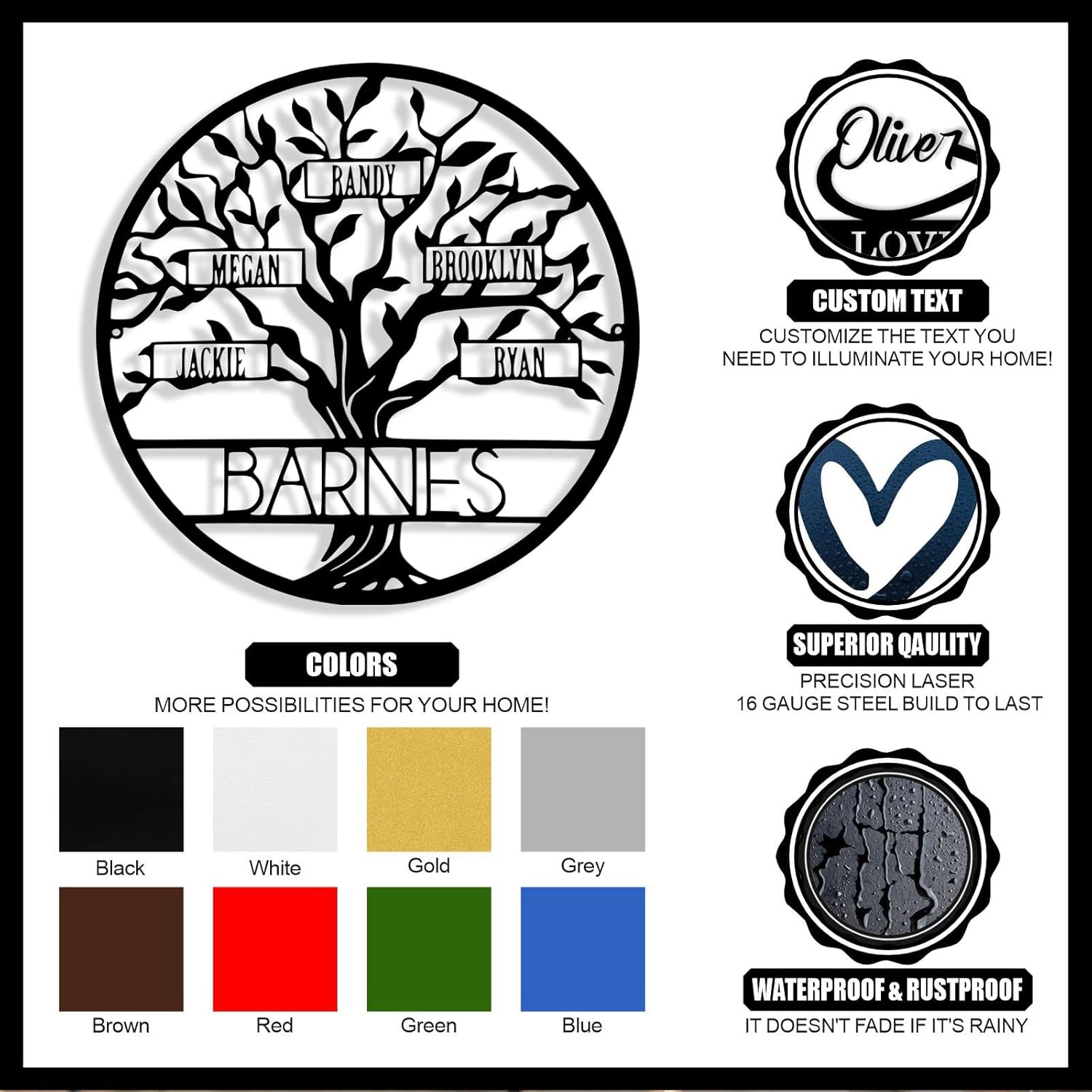 - Personalized & Name Customizable -- Click "CUSTOMIZE NOW" and enter the name or text. Our personalized Tree of Life Metal Sign designs make it unique, beautiful and elegant to create a perfect personalized family name sign for you. This custom last name sign is customized with your last name, first names and established date, will look beautiful indoor and outdoor any home.