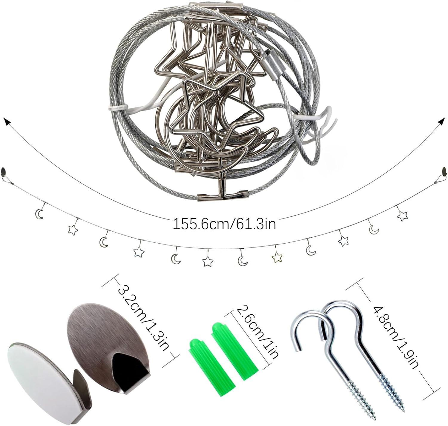 2 Pack Chain Photo Clip Hanging Photo Display Wall Photo Display Metal Photo String with 12 Clips Wall-Mounted Picture Holder for Hanging Painting Family Photos Artworks (Silver-Star and Moon)