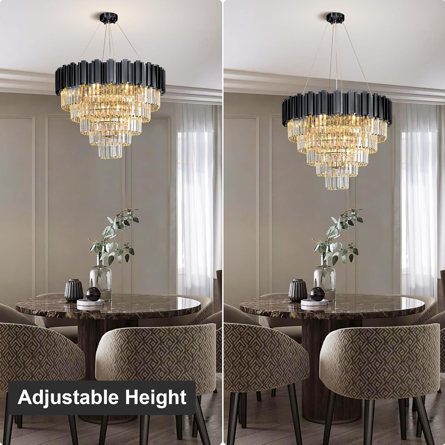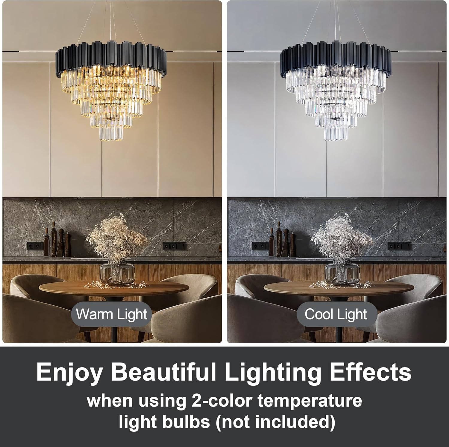 - 【Luxury Crystal Chandelier】This modern chandelier is crafted with premium matte black frame and 100% top K9 transparent crystals that exude a diamond-like brilliance. With 5 tiers and 228 sparkling crystals adds brilliance and sophistication, each crystal refracts light beautifully, creating a dazzling, luxurious atmosphere for your home.