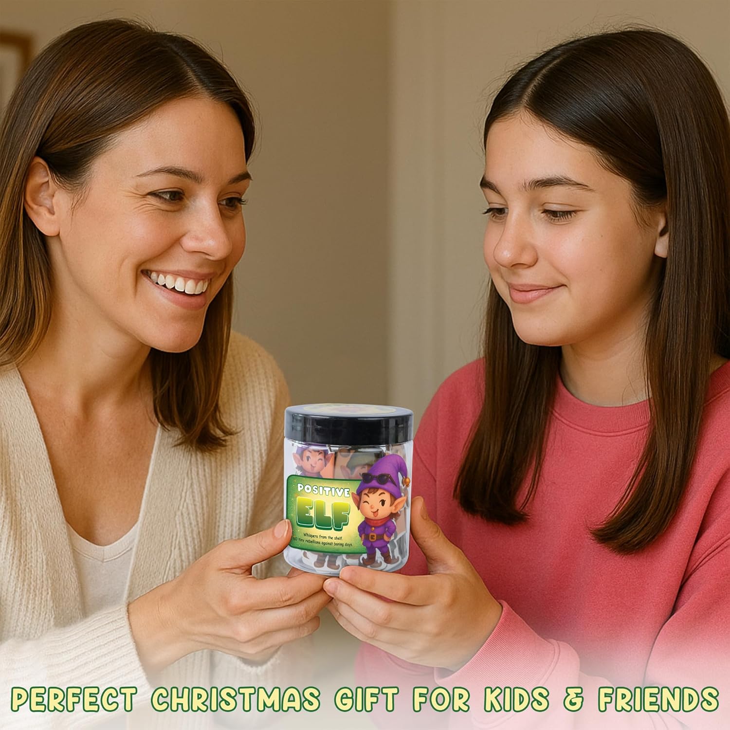 - 🎁 The Ultimate Feel-Good Gift This Positive Elf Jar is packed with 60 cheerful notes to boost joy, ease stress & bring laughs—perfect christmas gifts for teens and women who need a holiday pick-me-up. Whether you’re looking for stocking stuffers for teen girls or stocking stuffers for women, this positive Elf jar will brighten anyone’s day.