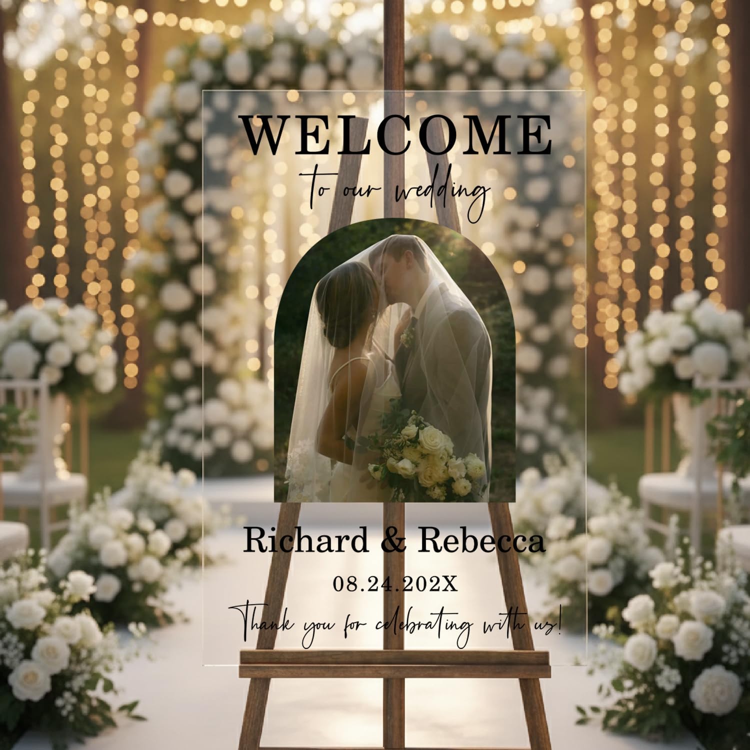 Personalized Wedding Photo Acrylic Welcome Sign – Custom Picture Board with Bride & Groom Names, Elegant Acrylic Wedding Reception Entrance or Ceremony Decoration, Indoor & Outdoor Keepsake Gift #8