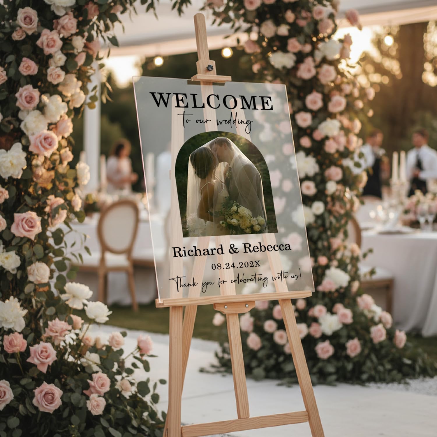 - 💍【Versatile Display Options】Our acrylic wedding sign can be placed on an easel, displayed on a stand, or mounted on walls. Suitable for both indoor and outdoor celebrations.